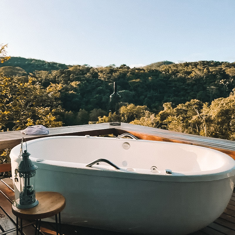 Perfeita para casais, nesta charmosa casinha construída a partir de um container, a vista é serena, a mata permanece intocada e o clima é de sossego e comodidade. Os ambientes estão integrados entre si, com uma cama de casal, salinha com sofá cama, banheiro, cozinha completa para fazer tudo o que precisa ali mesmo e, na varanda, uma área externa cheia de charme, com banheira de hidromassagem e vista das montanhas.
