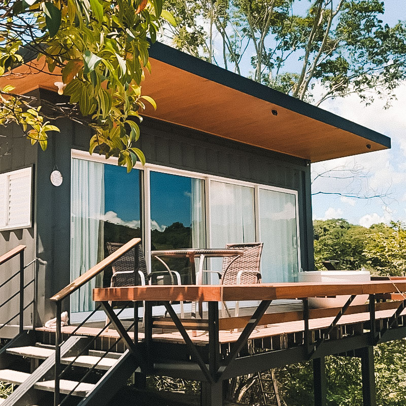 Ideal para casais que buscam experiências em meio a natureza e descansar com conforto, o Refúgio Container é o local perfeito para ver o pôr do sol mais lindo da Chapada. Composto por dois containers suspensos a três metros de altura no alto de um mirante, a suíte é destaque, com as paredes e o teto de vidro para admirar o céu estrelado e o pôr do sol. Além disso, o quarto também possui uma cama suspensa completamente integrada a natureza e a propriedade dispõe de cozinha equipada, fogueira e deck no segundo andar com uma vista deslumbrante.