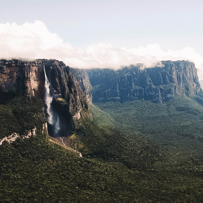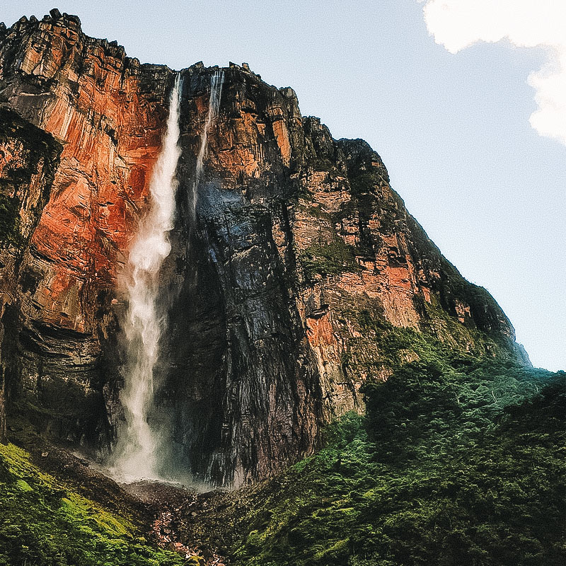 Para chegar lá, a jornada começa com um voo para Caracas e outro para Canaima. A partir de Canaima, os visitantes embarcam em uma viagem de barco que dura aproximadamente 4h, seguida por uma trilha de 1h30 até a base da cachoeira. Esse percurso atravessa rios, florestas e savanas exuberantes, destacando a vastidão e a beleza do Parque Nacional Canaima, que cobre cerca de 3 milhões de hectares de natureza preservada. Dica: visite o Salto Ángel entre maio e agosto, quando a incidência de chuvas é maior, resultando em níveis elevados dos rios e cachoeiras mais volumosas.