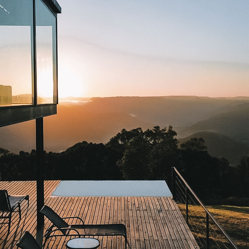 Localizado em Picada Café, o chalé é uma casinha rústica reconstruída, preservando a tradicional arquitetura dos imigrantes alemães. Cercado pela natureza, o espaço oferece calefator à lenha, cozinha completa e uma banheira privativa dentro do quarto para relaxar, enquanto no jardim de inverno o chuveiro adicional e o balanço se integram à paisagem por meio de paredes de vidro. Na área externa, varanda com vista para as montanhas, parrilla equipada, deck, redário, rede suspensa, jacuzzi, fogo de chão e jardim completam a experiência. Obs: o nascer do sol se destaca, perfeito para começar o dia contemplando a Serra Gaúcha em um ambiente acolhedor. Diárias desde R$ 699.