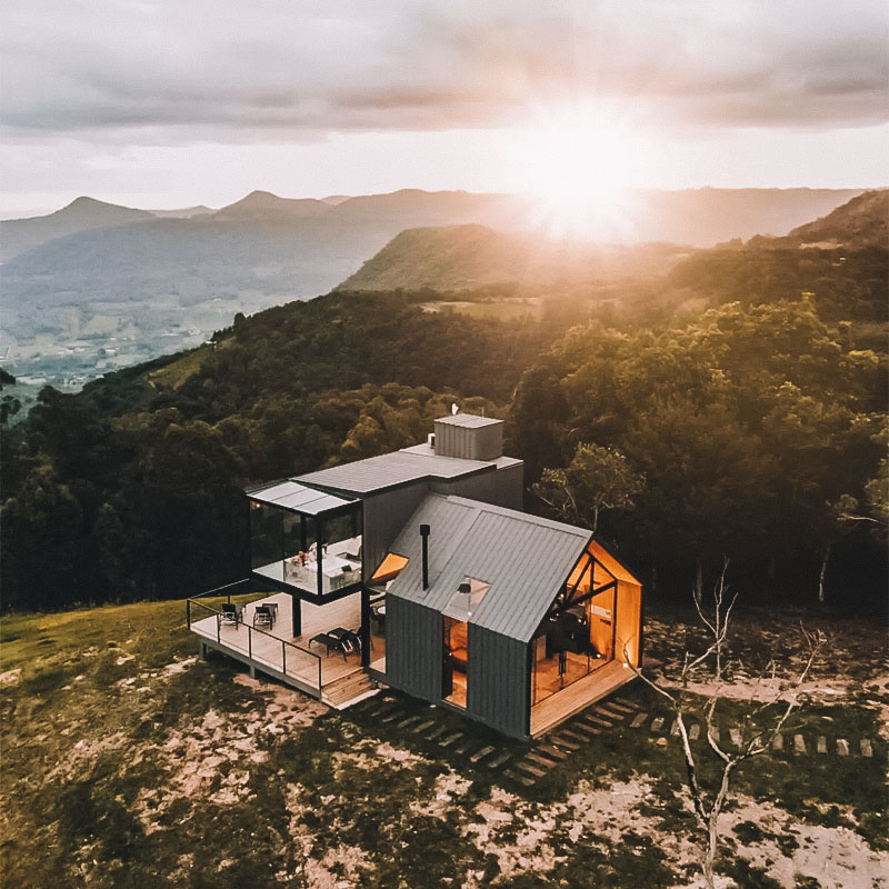 Com um design único, com vibes futuristas, a casa Asolo tem estrutura em formato de contêiner, com grandes janelões de vidro, dois andares e uma vista panorâmica incrível das montanhas e do nascer do sol. No andar superior, uma suíte com banheira de hidromassagem, embaixo, sala e cozinha integrados, banheiro, sofá cama e deck externo coberto. A casa está dentro de uma vinícola familiar, junto com a Casa Castelcucco, e por lá, na safra, é possível provar variedades de uvas. Diárias a partir de R$ 1 322.
