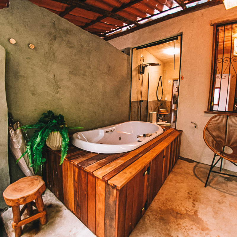 Inserida em uma fazenda com vegetação nativa de Cerrado, a cabana fica em uma encosta de morro com vista para paredões rochosos, com acesso à cachoeira exclusiva e muito espaço verde para explorar. O refúgio é exclusivo para uma estadia a dois, todo em madeira e pensado para proporcionar o maior conforto ao casal, além de contar com ampla varanda com vista. E mais: a cabana conta com lareira, cozinha completa, tapetes de yoga, jogos de tabuleiro e, na parte externa, aproveite o deck, ducha, espaço para fogueira, espreguiçadeiras, churrasqueira e uma deliciosa banheira de imersão.