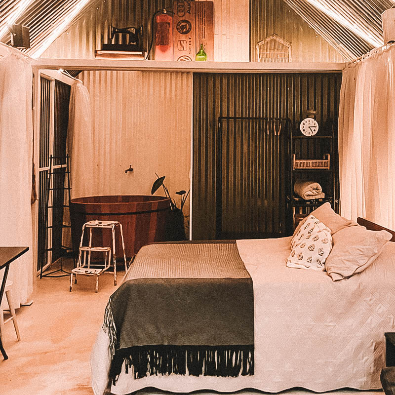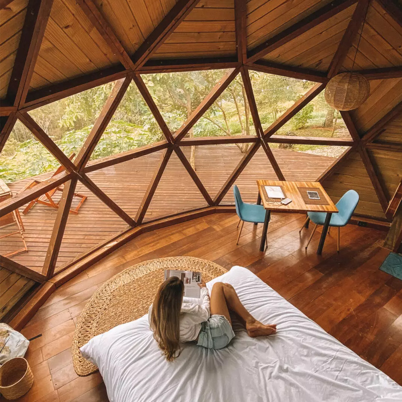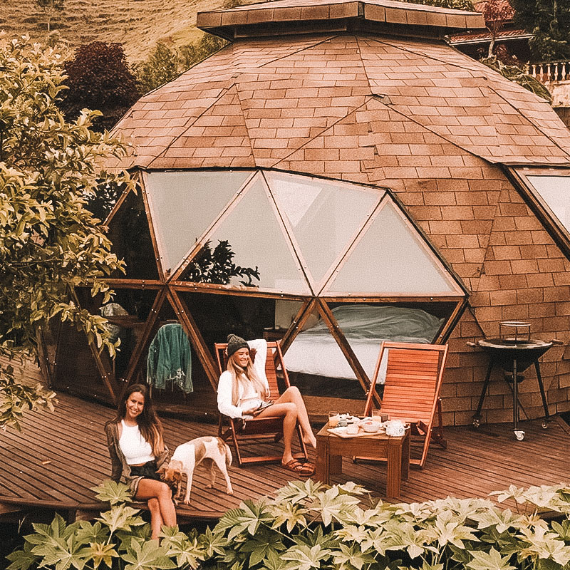 O Domo Geodésico é feito com madeira ecologicamente tratada está imerso em uma propriedade rural única com horta de temperos, chás e vegetais para os hóspedes se servirem, aliando a simplicidade da roça com o conforto de um design bem pensado. Seguindo a tendência dos glampings, a estadia é perfeita para quem quer ter uma experiência de acampamento sem abrir mão do conforto e da segurança. Dentro da cabana de 38 m², há uma cama queen, banheiro com ducha elétrica, cozinha equipada com fogão, forno e frigobar, além do mezanino, pensado para as práticas de meditação. O ponto alto é o painel de vidro contemplando as cadeias de montanhas da Serra da Mantiqueira de Monteiro Lobato. Diárias desde R$ 760.
