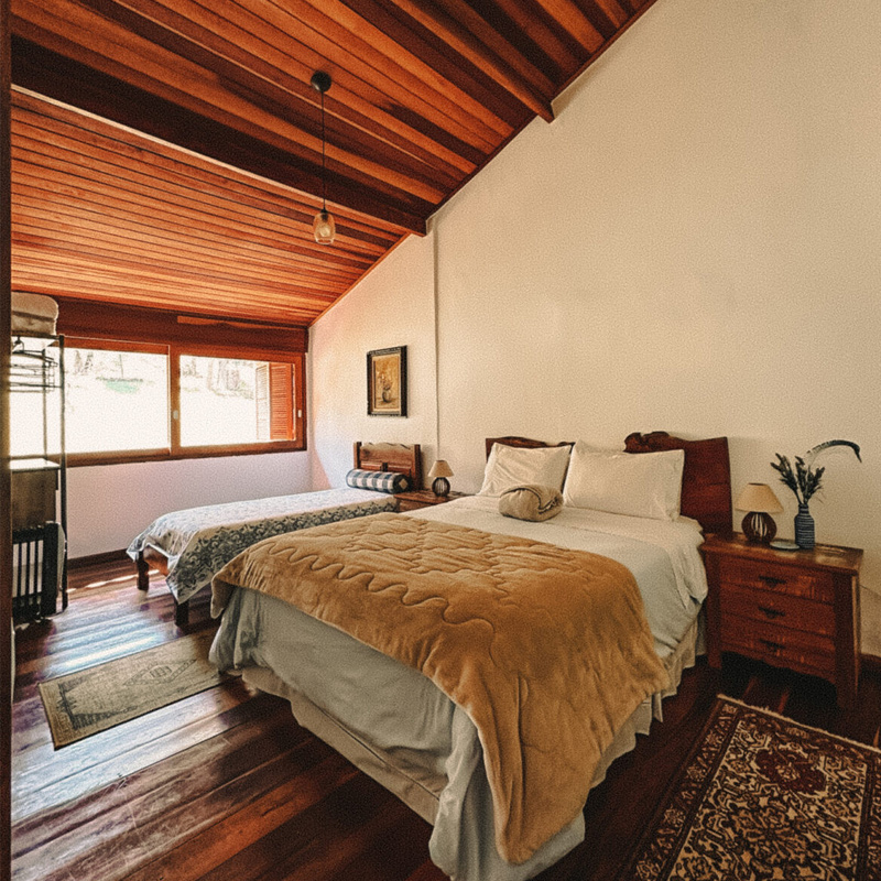 Cercada por 32 mil m² de natureza e com vista para as montanhas da Serra da Mantiqueira, a pousada é o lugar ideal para descansar, ouvir o canto dos pássaros e aproveitar o clima fresco da serra. Inaugurada em 2017, é administrada pela própria família e conta com apenas oito acomodações: oferece uma experiência intimista e acolhedora. As suítes são bem confortáveis, algumas contam com banheira de hidromassagem e varanda com vista, e o melhor: a estrutura inclui uma piscina de frente para a vegetação, perfeita para apreciar o pôr do sol, além de horta, área de lazer e um café da manhã completo com produtos frescos. Diárias a partir de R$ 80.