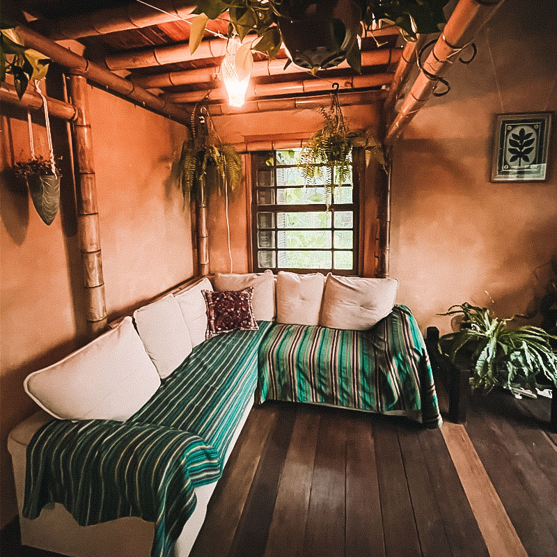 Em meio à vegetação exuberante de Monteiro Lobato, a Casa de Bambu na Serra da Mantiqueira é um refúgio que une sustentabilidade, conforto e natureza. Construída com bambu e materiais de demolição, a casa está cercada por 62 mil m² de verde, onde nascentes, trilhas e rios compõem o cenário para quem quer se desconectar do ritmo acelerado da cidade grande. O interior é rústico, com uma cama de casal e duas de solteiro, aquecedor elétrico e uma cozinha completa. Do lado de fora, conte com uma varanda, churrasqueira, rede, espaço para fogueira e uma piscina natural. Obs: há ainda uma sauna, ideal para aproveitar os dias frios da serra. Diárias desde R$ 464.