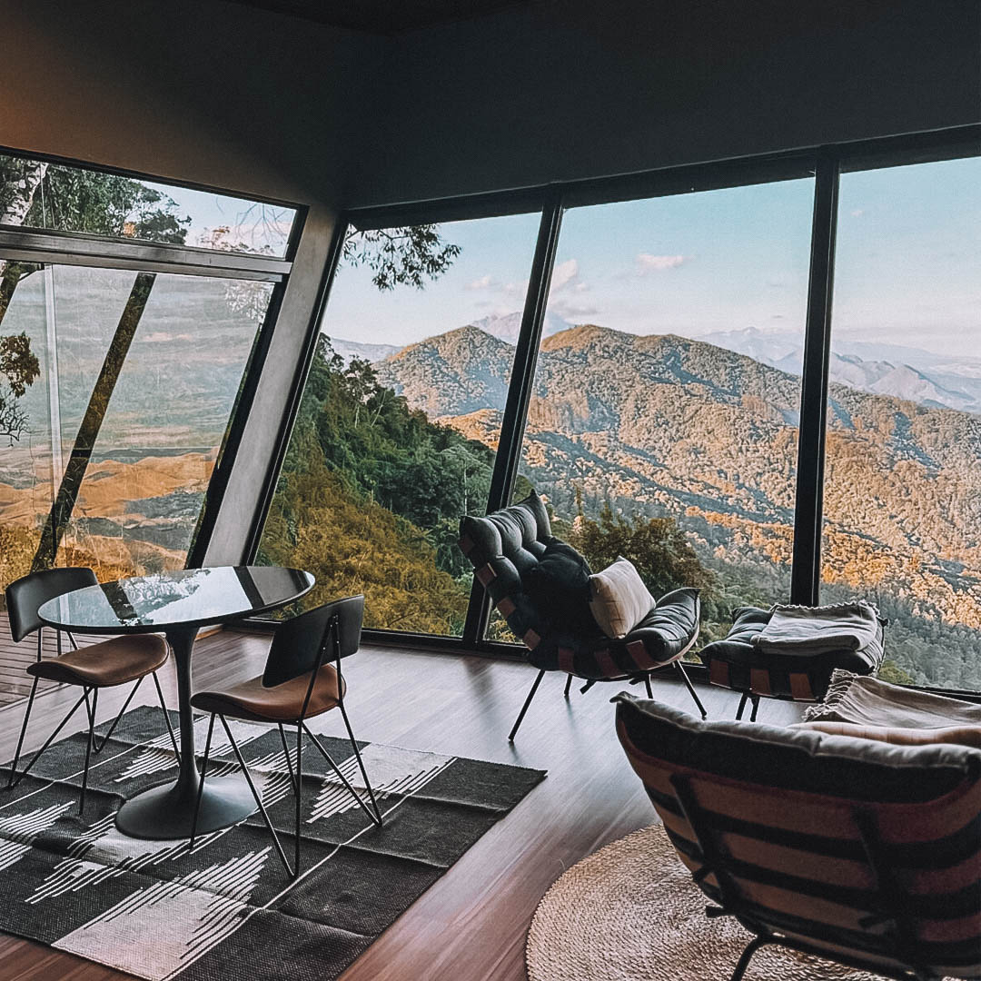 No coração da Serra da Cantareira, em Monteiro Lobato, esse domo geodésico feito com madeira ecologicamente tratada está imerso em uma propriedade rural única com horta de temperos, chás e vegetais para os hóspedes se servirem, aliando a simplicidade da roça com o conforto de um design bem pensado. Seguindo a tendência dos glampings, a estadia é perfeita para quem quer ter uma experiência de acampamento sem abrir mão do conforto e da segurança. Dentro da cabana de 38 metros quadrados, há uma cama queen, ar-condicionado, banheiro com ducha elétrica, cozinha equipada com fogão, forno e frigobar, além do mezanino, pensado para as práticas de meditação. O ponto alto é o painel de vidro contemplando as cadeias de montanhas da Serra da Mantiqueira de Monteiro Lobato.