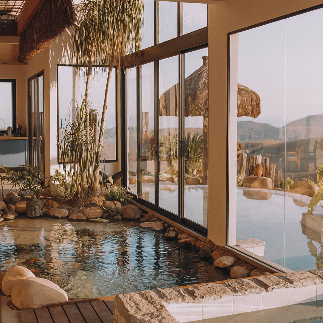Fazendo jus ao nome, ali a sensação é de estar em um grande aquário, com janelões de vidro do chão ao teto, paredes de pedra e um refúgio de tranquilidade. Usufrua da jacuzzi, lareira, ampla sala de jantar, piscina natural com peixinhos, e uma boa cozinha e descanse em um dos três quartos disponíveis. A área externa complementa a experiência, com uma área com areia, piscina iluminada com vidros, poltronas e fire pite com vista incrível para as montanhas e pôr do sol.