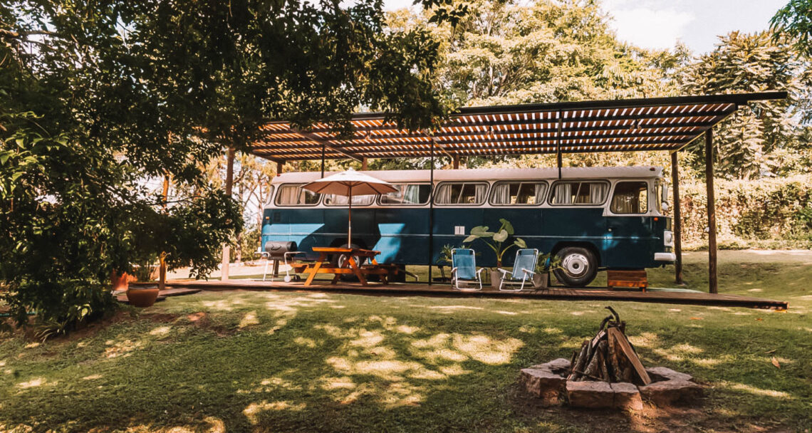 Em uma chácara a três quilômetros do centro de Águas de São Pedro, está estacionado um Ônibus Mercedes 1974, um motorhome reformado, revitalizado e transformado em uma estadia autêntica e exclusiva, sem perder o conforto. Na área interna, há fogão, geladeira, forno, chuveiro com água quente, banheiro, cama queen size, futon, vitrola e projetor. Já na parte externa, conte com banheiras vitorianas com água quente e fria, fogueira, churrasqueira, espreguiçadeiras, redes para descanso e um lago.