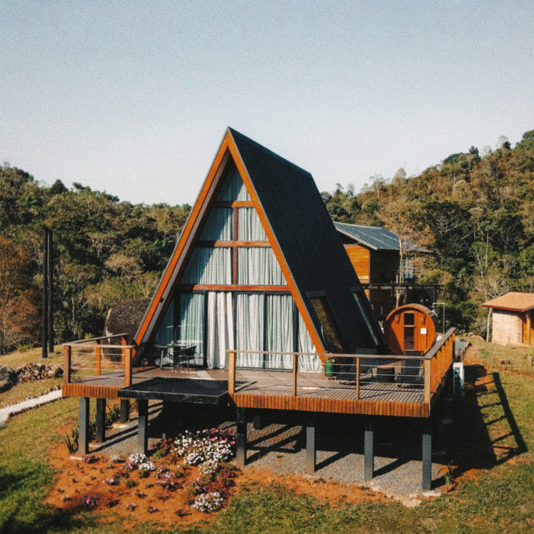 Com 70 m² em estilo A-frame com toques de farmhouse, a cabana está situada na serena Serra da Mantiqueira, em São Francisco Xavier. Perfeita para casais que buscam silêncio e uma experiência romântica, a cabana combina modernidade e aconchego. Destaque para a banheira na sala, onde você pode relaxar com uma vista deslumbrante das montanhas. Na área externa, um deck com espreguiçadeiras, sauna com ducha e uma acolhedora área de fogueira oferecem vistas incríveis, permitindo que você desfrute da natureza com total privacidade. Diárias a partir de R$ 1 566.