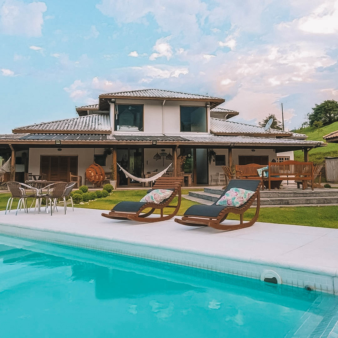 A casa de campo moderna e aconchegante é perfeita para quem busca silêncio em meio à natureza e uma experiência. Com duas suítes, hidromassagem, lareira e uma cozinha gourmet completa, a casa oferece todo o conforto em um ambiente sereno. Na área externa, um amplo ofurô, churrasqueira, deck com vista para a mata e trilhas que levam a cachoeiras tornam a estadia ainda mais relaxante e imersiva. Diárias a partir de R$ 870.