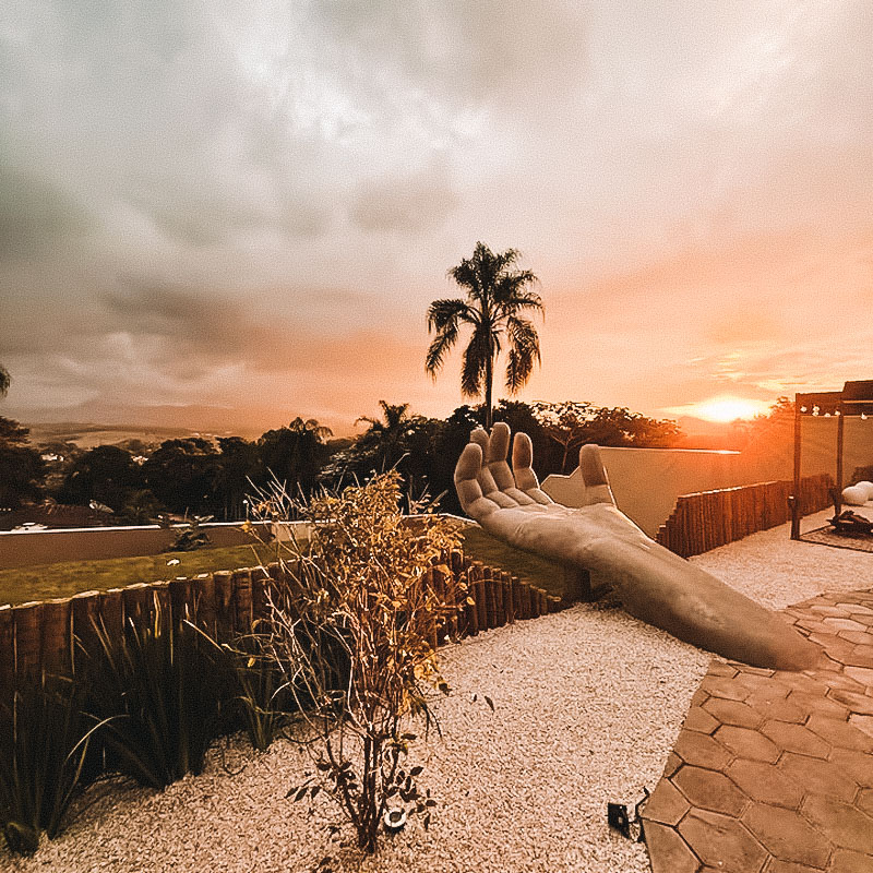 Um pedacinho da Grécia perto de Campinas, o Domo Grécia é uma experiência à parte – sofisticado, romântico e repleto de charme. Inspirado na arquitetura das ilhas gregas, combina tons claros e uma atmosfera de tranquilidade absoluta. O destaque vai para a escultura “Mão de Deus”, obra que transforma o espaço em um cenário artístico e contemplativo. Por dentro, o domo conta com cama de casal com vista para as montanhas, banheira de hidromassagem, cozinha completa e mezanino com claraboia para observar o céu. O exterior também é belíssimo: dispõe de piscina privativa, firepit, rede de balanço e área gourmet criam o ambiente ideal para momentos a dois. Diárias desde R$ 1 488: RESERVE AQUI COM 5% DE DESCONTO NO PIX VIA HOLMY!