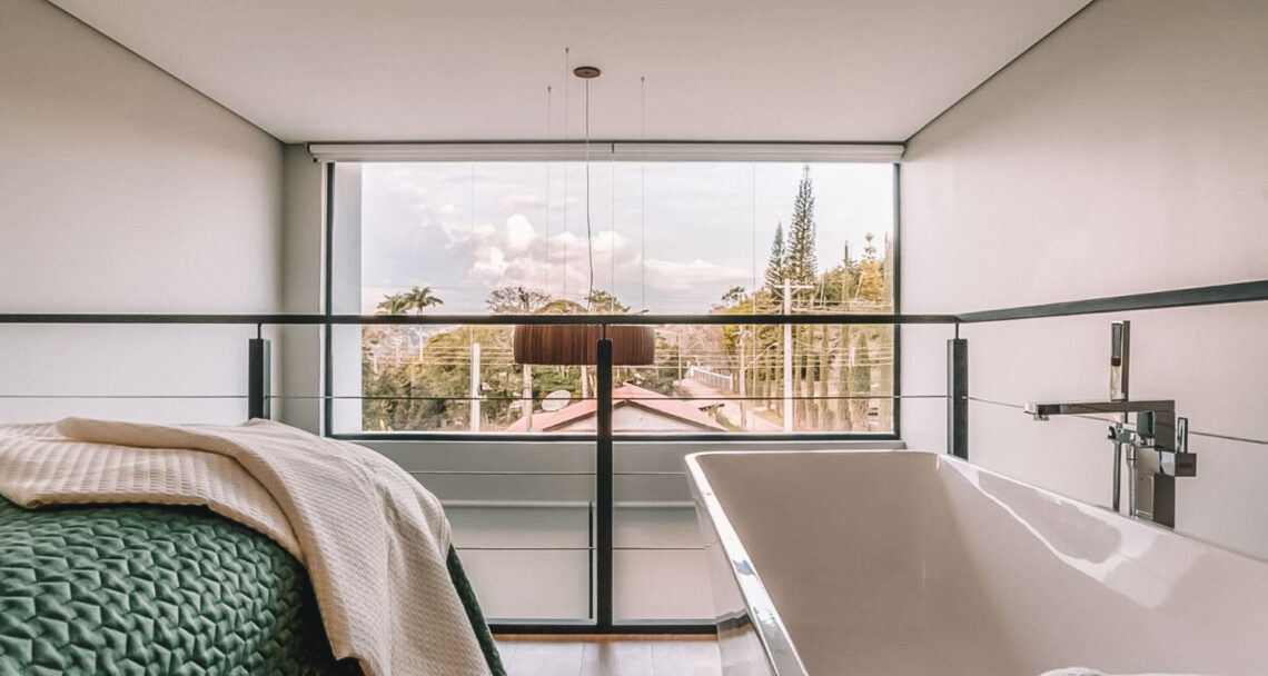O Loft Minimalista é uma tiny house de 45m² que combina conforto, tecnologia e estilo em meio à natureza de Serra Negra – design contemporâneo e atmosfera acolhedora definem a estadia. Primeira construção em steel frame da região, o espaço é moderno e funcional. No mezanino, o quarto com cama queen e banheira de imersão oferece vista para o verde e o nascer do sol – o cenário perfeito para relaxar. No térreo, há uma sala integrada com lareira e cozinha completa, além de um cantinho de café. Diárias desde R$ 790: RESERVE AQUI COM 5% DE DESCONTO NO PIX VIA HOLMY!