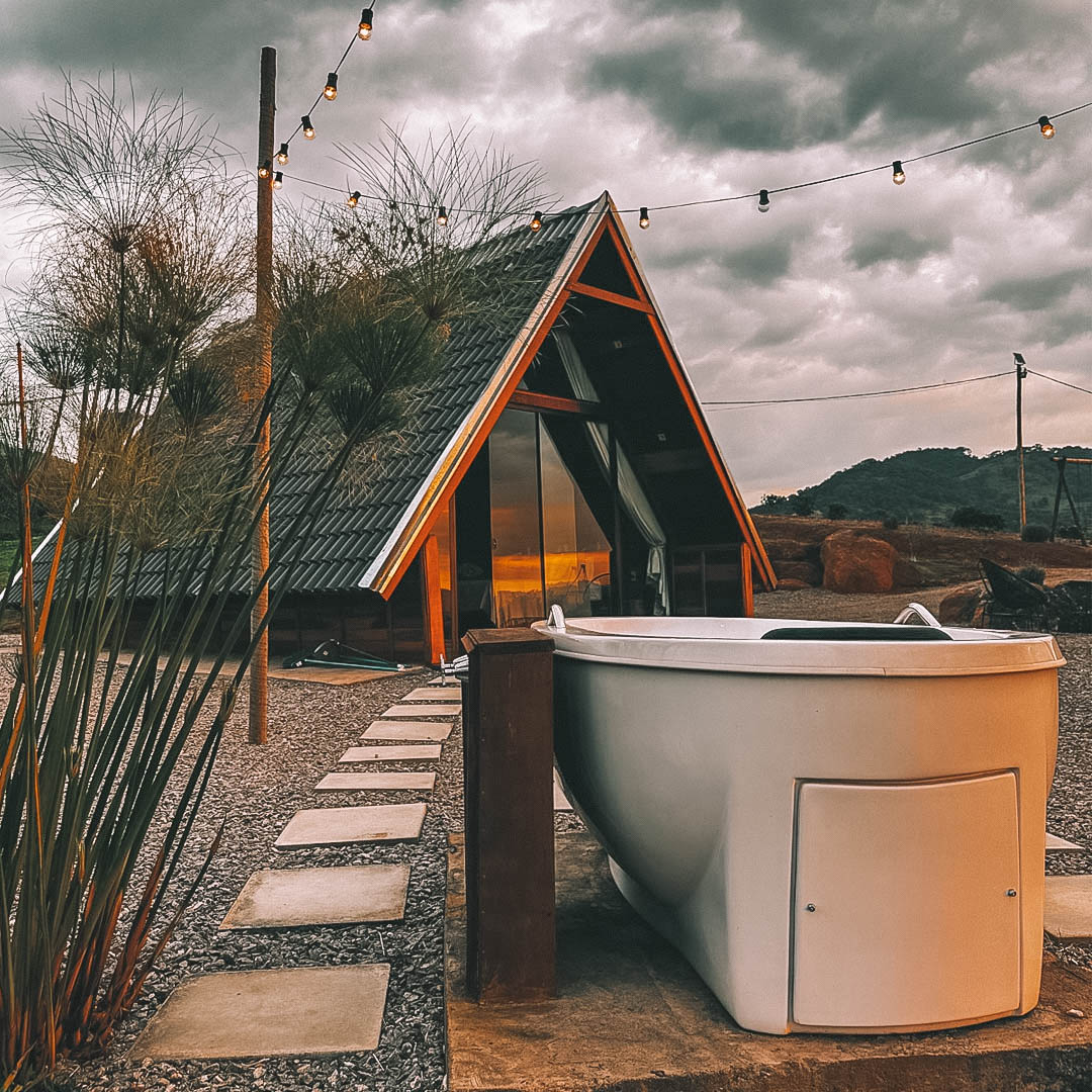 A primeira cabana boutique da Serra da Mantiqueira é simplesmente perfeita: oferece conforto, luxo e tecnologia em um ambiente intimista, com mais de 120 metros quadrados. Tem sauna, fire pit e uma área para churrasco. Conte com amenities, roupas de camam, cozinha gourmet, tapetes de yoga e um delicioso ofurô. E o melhor: o terreno possui um pequeno riacho e vários cantinhos especiais para você curtir um piquenique.