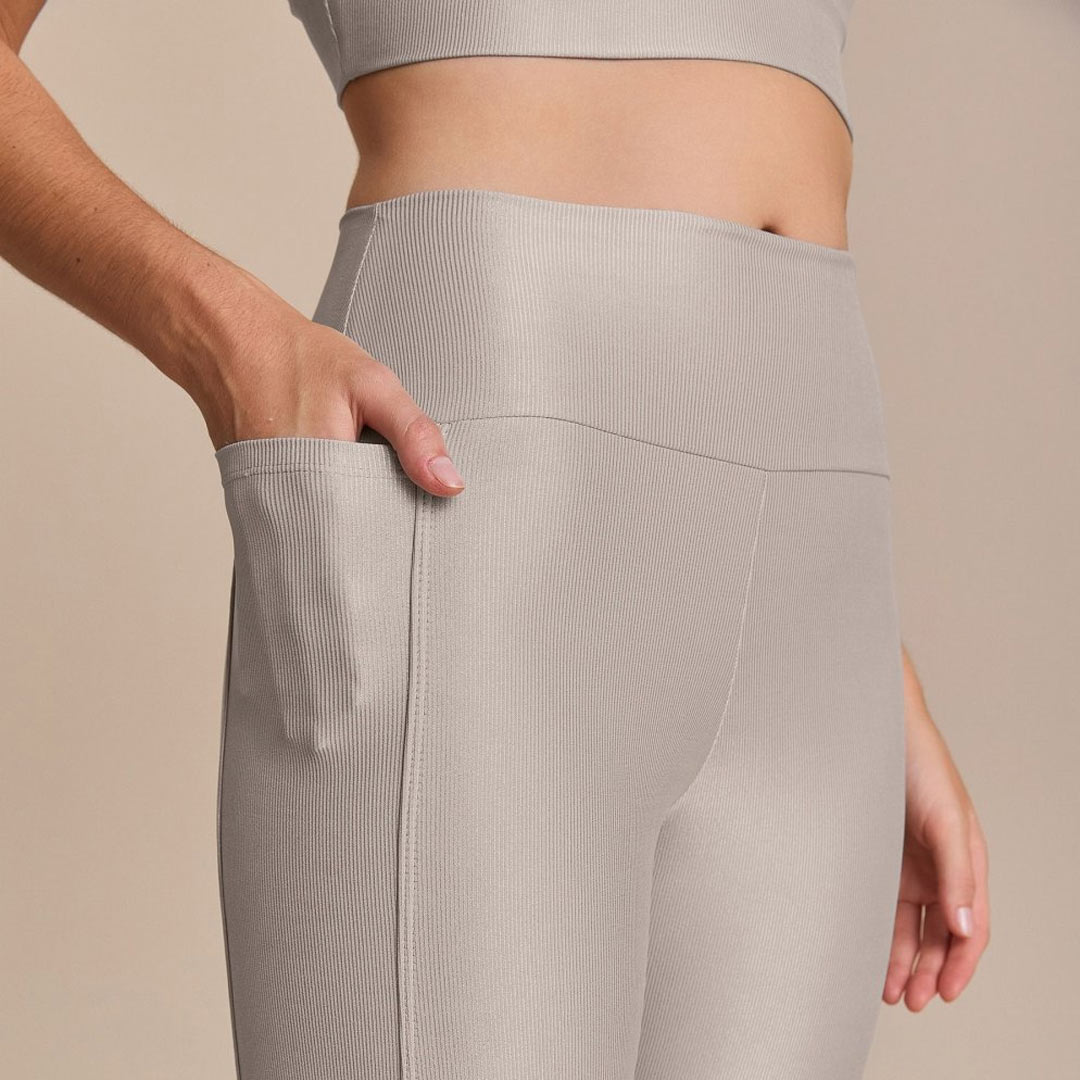 Peças sem costura da marca, que dá todo um visual clean e sensação de conforto extremo, como se fosse uma segunda pele. É o mais usado para práticas de yoga, pilates e alongamentos no geral.