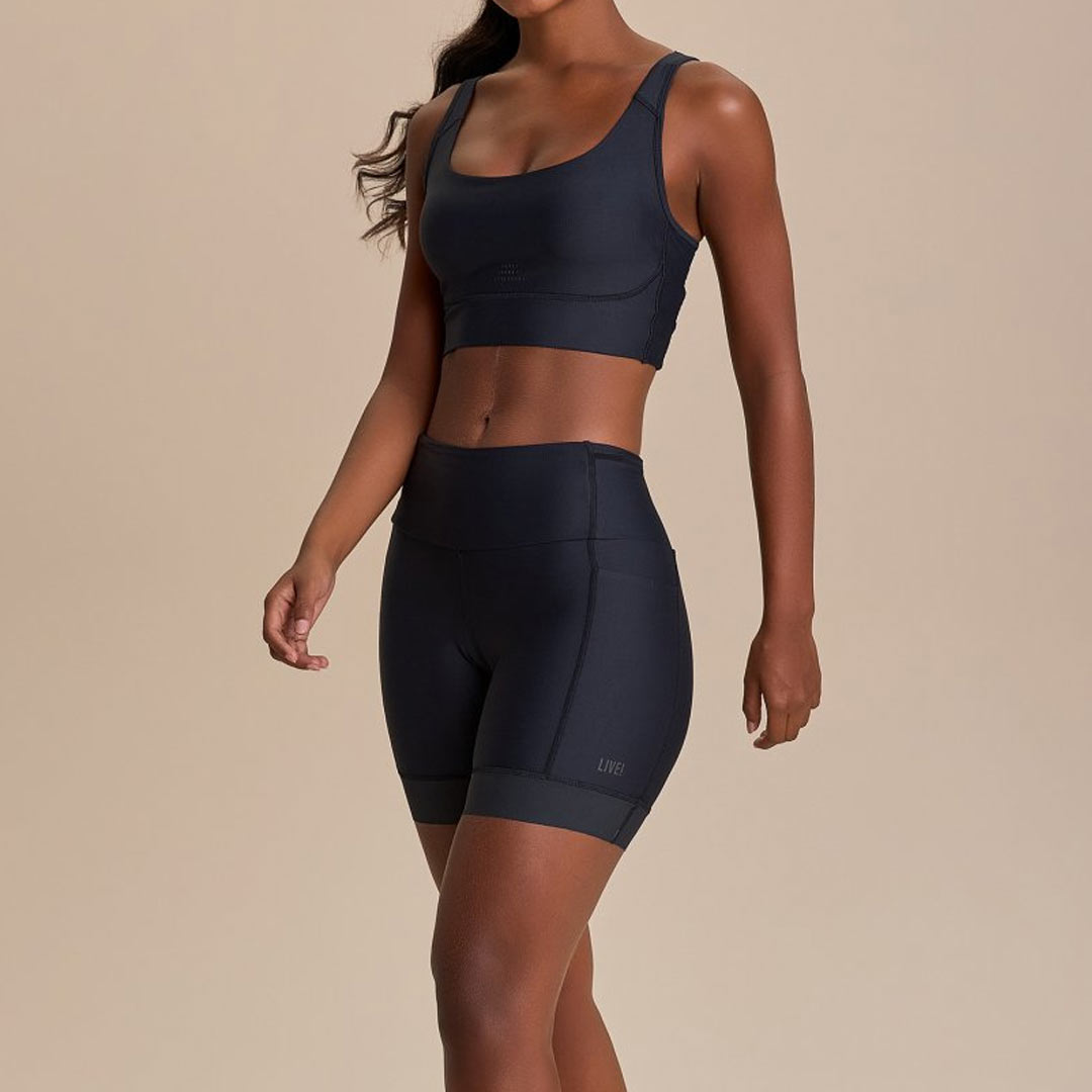 Tecido mais incorpado, que se modela com naturalidade e suporte ao corpo, além de promover equilíbrio térmico, alta respirabilidade e compressão média. Claro, como tudo da LIVE!, é zero transparência.