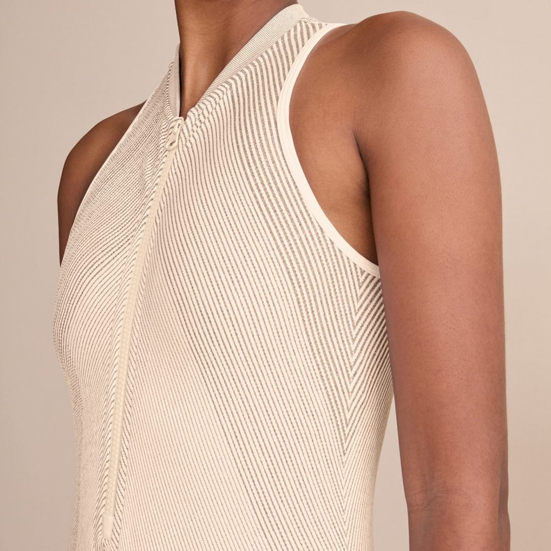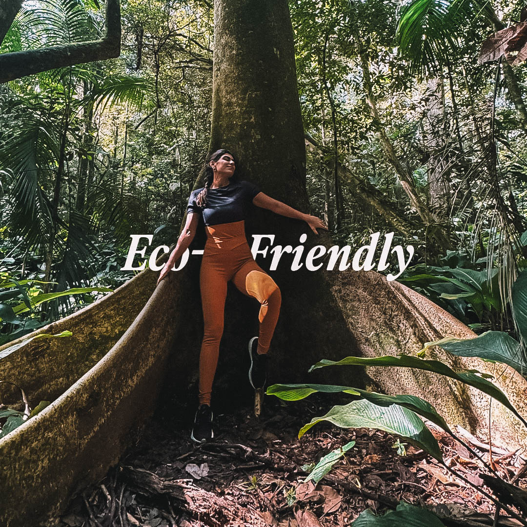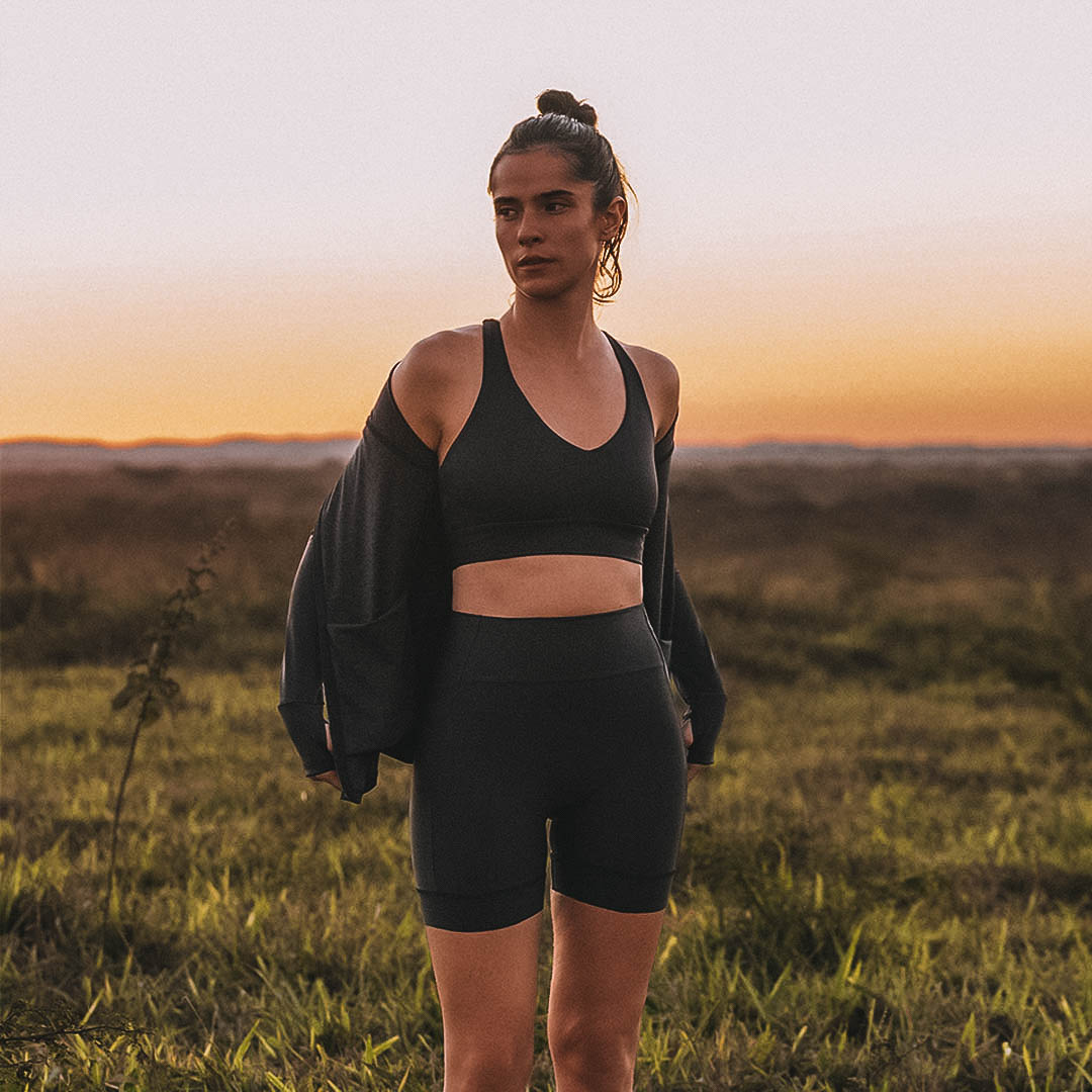 O primeiro tecido 100% reciclado produzido no Brasil, feito a partir de um blend de fibras recicladas e as tecnologias LYCRA® EcoMade e Sensil® EcoCare. Tem compressão média, conforto térmico e modelagem impecável.