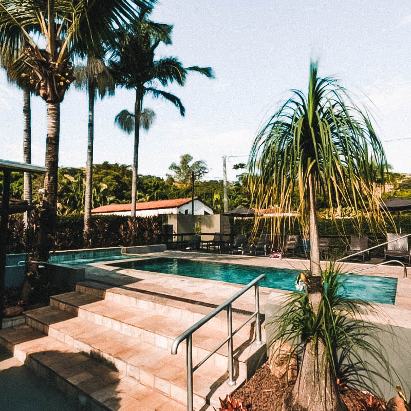 Simples e aconchegante para quem quer estar perto da natureza. O café da manhã é servido em estilo buffet, com vista para a paisagem e uma seleção de produtos frescos: bolos caseiros, frutas da estação e sucos naturais. Entre os destaques da área externa estão duas piscinas climatizadas, redes e balanços perfeitos para relaxar ou tirar fotos. Há ainda uma sala de jogos com sinuca e pingue-pongue, além de um espaço com TV para quem quiser descansar no fim do dia. Diárias desde R$ 265.