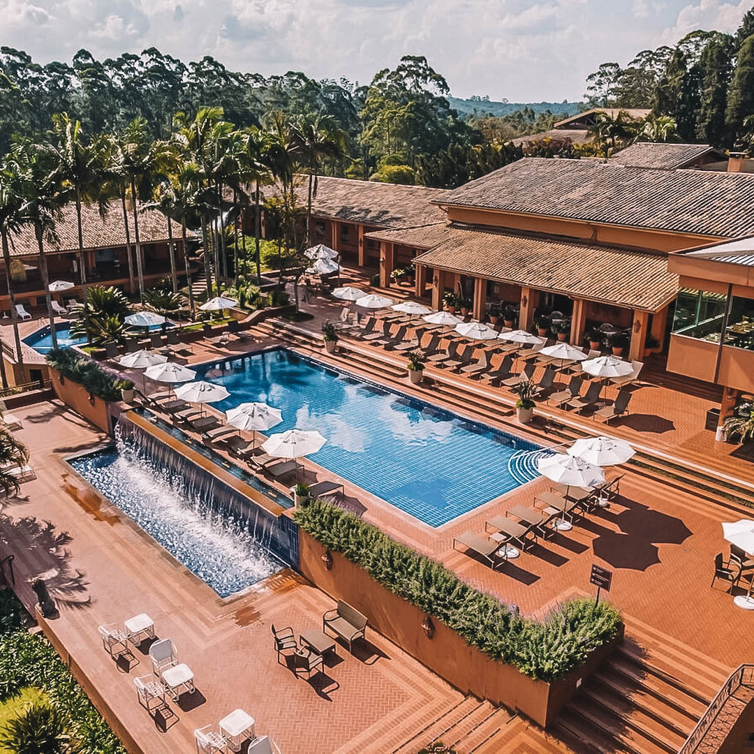 Gira em torno do bem-estar do corpo. Organiza caminhadas pela horta e observação de pássaros. Espaços de meditação pontilham pela mata, e o spa tem mais de 100 terapias. No café, espere por frutas orgânicas e sucos, crepes e tapiocas. Quem vai ficar com pets pode ficar em qualquer acomodação, menos na Vila Mediterrânea, a mais básica, e a estadia para o bichinho, que pode ser de qualquer raça e tamanho, sai por um extra de R$ 250 com caminha, cobertor, bebedouro e comedouro inclusos. Eles podem circular por toda a propriedade, menos na piscina e no spa. Diárias a partir de R$ 2 400.