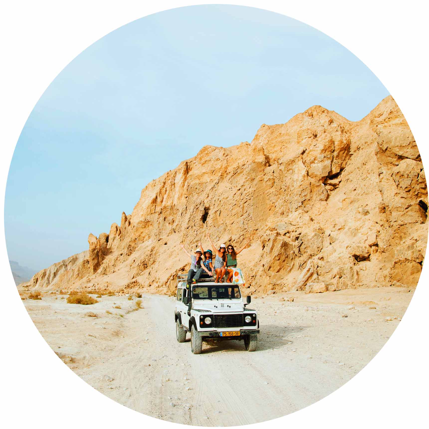 A leste do Mar Morto, montanhas de areia e sal ao redor de um extenso planalto numa área de cerca de 1 500 km² formam o bíblico Deserto da Judeia, onde viveu o profeta Elias e João Batista batizou Jesus. Hoje, há uma reserva natural cheia de vida, com raposinhas, roedores, aves, escorpiões e cobras – mas é dificílimo avistar os animais, majoritariamente noturnos. O mais interessante do lugar é o tour de jipe 4×4, que adentra o deserto e deixa ver cenários inspiradores. Você sobe e desce as montanhas dentro do veículo, explora as formações de sal cobertas por areia e entra em pequenas grutas branquinhas – a região provavelmente já foi parte de um lago salgado como o Mar Morto que secou e deixou toneladas de sal por ali. É um dos passeios mais fotogênicos da viagem.