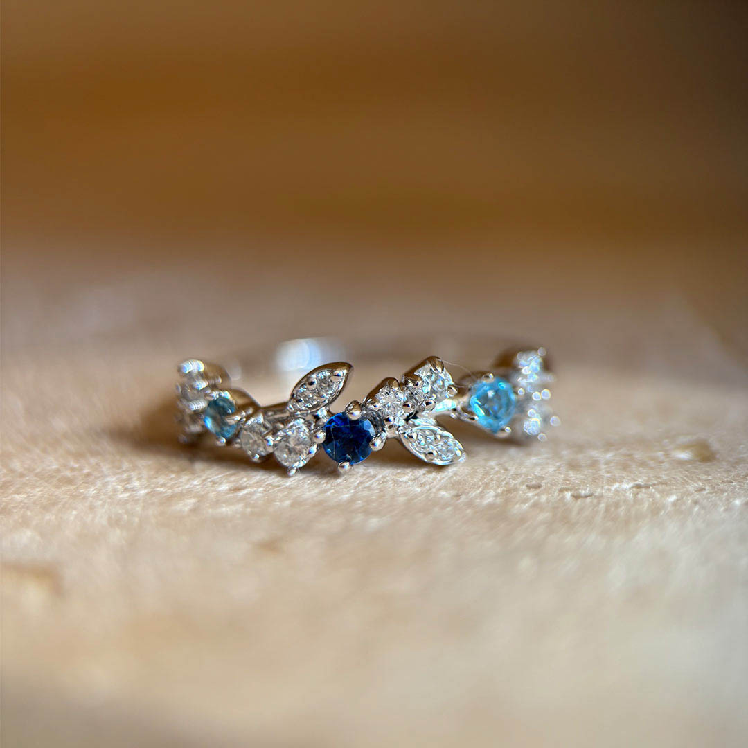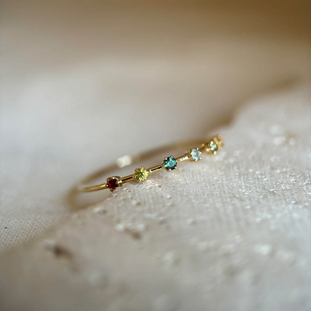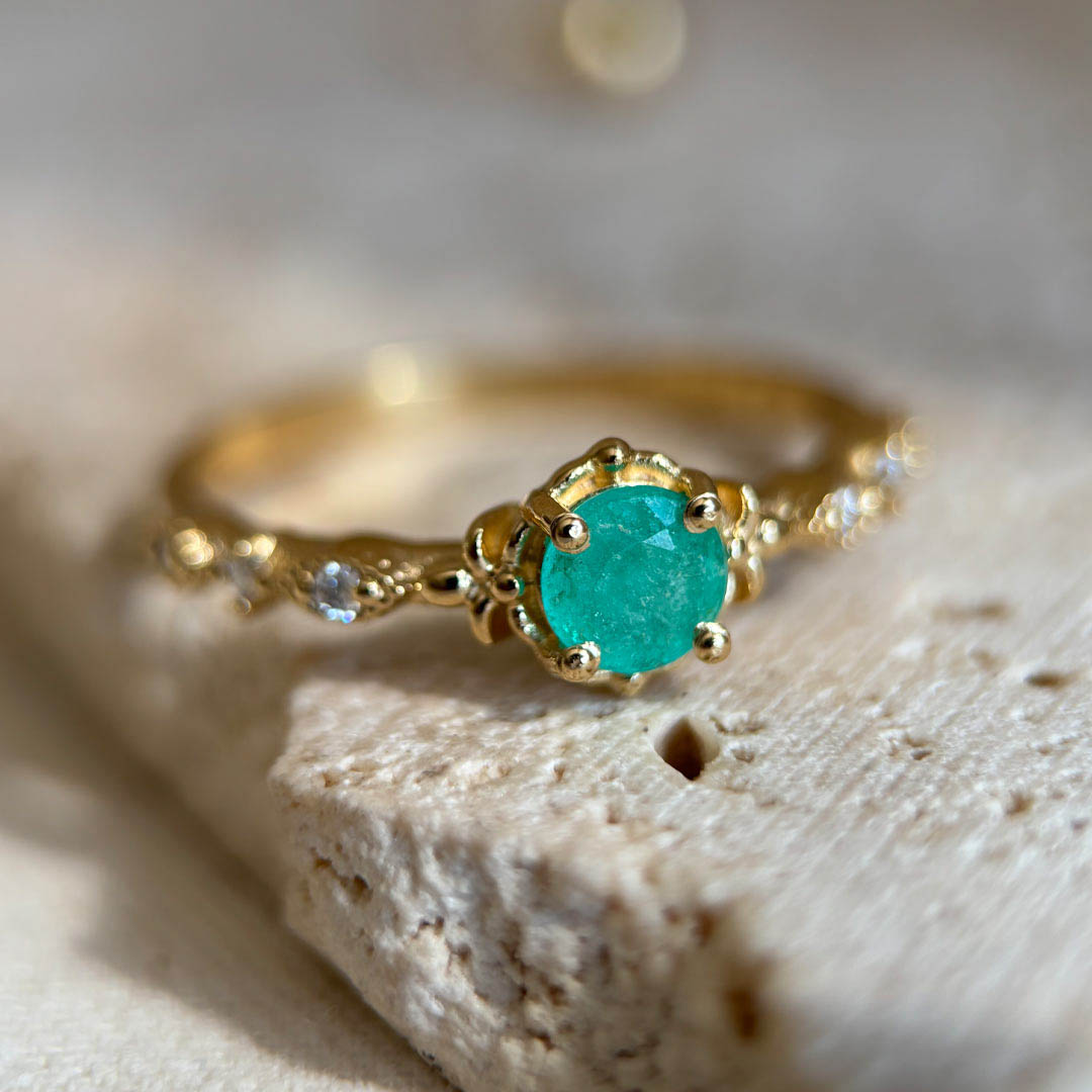 O Brasil é um destino de solar, vibrante e leve. O mar do nordeste, em especial, carrega tons de azul e verde que mudam com a luz do sol. O Anel Bella busca capturar essa vibração brasileira na essência, combinando o ouro amarelo com a Turmalina Paraíba, pedra genuinamente brasileira, ao centro, como se carregasse parte da água ali mesmo.