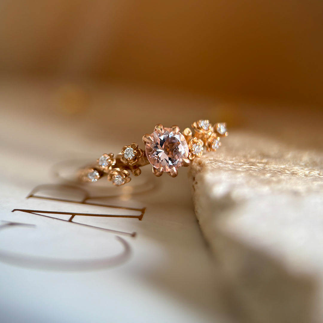 Apesar de parte da força do Japão vir do seu dinamismo, poder tecnológico e tendências, suas tradições milenares são preservadas com cuidado, seja através de cerimônias, templos, jardins ou rituais. A flor de sakura, por exemplo, ocupa um lugar especial. Ela simboliza a chegada da primavera e, com ela, um novo ciclo e o legado da mono no aware, da filosofia japonesa, o conceito de que tudo é passageiro, assim como as flores. Para traduzir esse símbolo, o anel Sakura combina ouro rosé com morganita e diamantes, reforçando o brilho suave e a estética romântica.