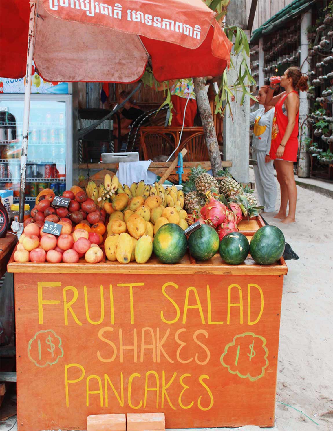 O núcleo principal do turismo de Koh Rong é o vilarejo de Koh Toch, onde chega o ferry. Ali tem uma alameda beira-mar bem simpática com uma série de guesthouses, restaurantes, barzinhos, banquinhas de fruit shakes (manga, pitaya, banana) e cadeiras dispersas na areia. A vibe é cool e relaxada, a galera é basicamente composta por mochileiros.