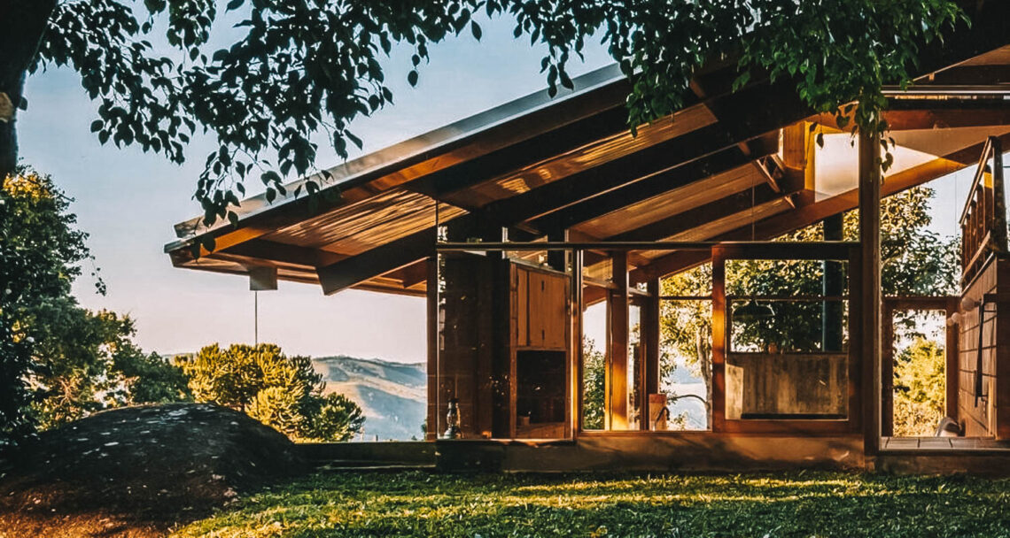 A Casa Meia Encosta fica nas montanhas da Serra da Mantiqueira e combina arquitetura moderna com design minimalista. Foi toda pensada para valorizar a paisagem ao redor e oferecer um refúgio acolhedor, silencioso e conectado. Na área interna você vai encontrar janelões de vidro, muita madeira, pedra e concreto e, na área externa, um amplo gramado verde com churrasqueira. Comporta até seis hóspedes em três quartos.
