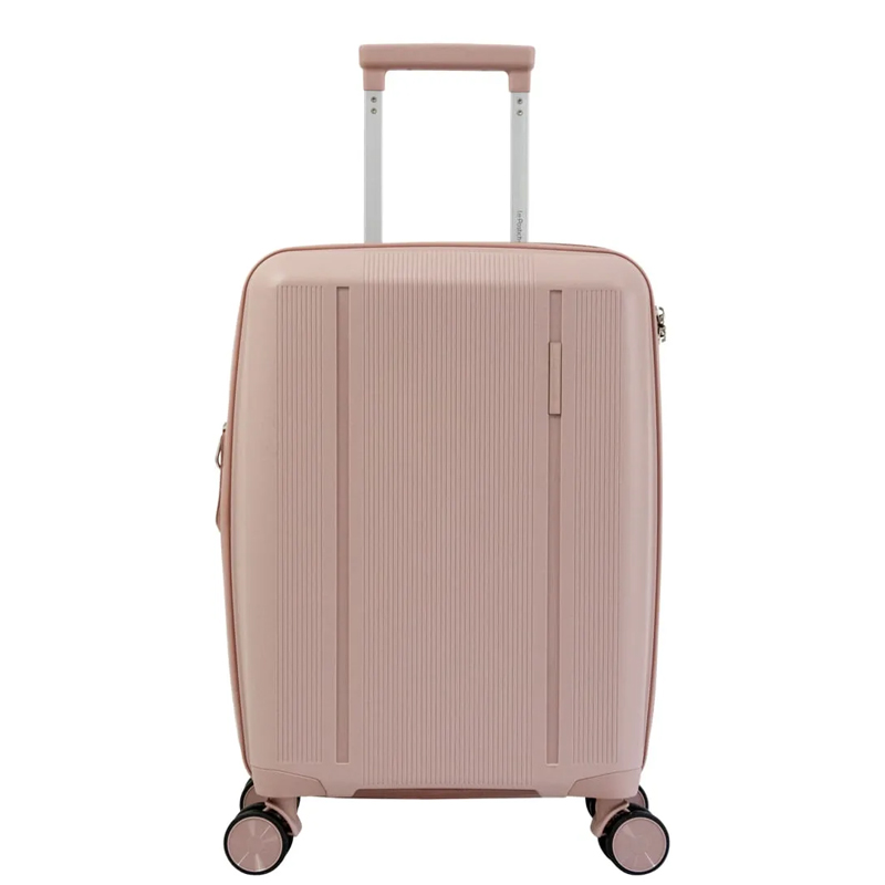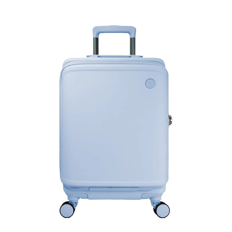A mala de bordo, com capacidade para até 10 kg, aposta em um design clean e minimalista. Fabricada em polipropileno, é leve, resistente e durável: possui quatro rodas duplas com giro de 360° e movimento silencioso, puxador retrátil com ajuste de altura e botão liberador. O interior é bem distribuído, com bolsos organizadores e cinta elástica com trava, além de zíper expansor que permite ampliar o espaço quando necessário. O modelo conta ainda com cadeado TSA, adequado para viagens internacionais.