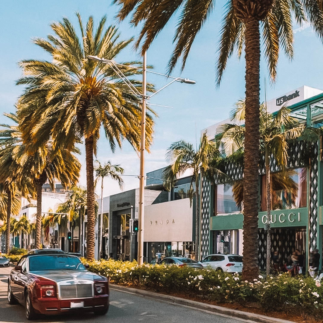Acredito que seja um consenso que a rua mais chique de Los Angeles é a Rodeo Drive, em Beverly Hills. É famosa, luxuosa e cara, concentrando algumas das lojas mais exclusivas do mundo em sua extensão. Aliás, mesmo quem não vai às compras costuma colocá-la no roteiro de viagem para ver as vitrines de pertinho e os carros luxuosos passando pela rua, criando todo o cenário que parece ter saído de um filme.