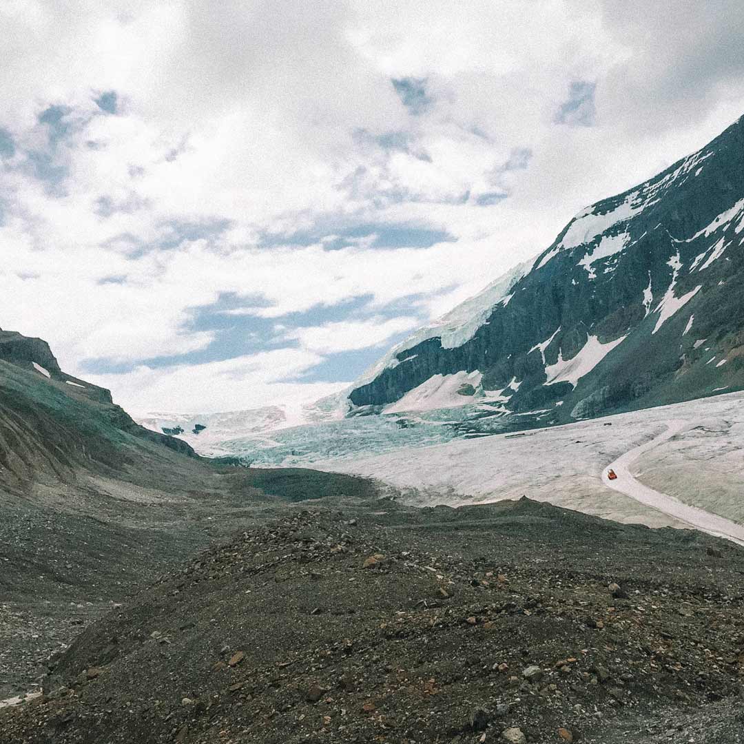 O dia começa na estrada mais cênica de todo o Canadá, a Icefield Parkway, também nomeada Highway 93, a caminho de Jasper. Depois de um café da manhã mais reforçado, a pedida da vez é um passeio com uma atmosfera diferente, paisagem de outra coloração e clima mais gelado: Columbia Icefield, num tour pela geleira de Athabasca, um dos maiores campos de gelo não polar do mundo, localizada dentro  do Parque Nacional de Jasper. Nesta experiência, os visitantes podem pisar na geleira, admirar a vista repleta de neve e alguns até se arriscam em beber a água gelada que circula por lá. Uma das partes mais divertidas é o trajeto até o destino final – feito dentro do ice explorer, um veículo com rodas gigantescas, de aproximadamente 1,56 de altura, o necessário para passar por vias íngremes, de cerca de 34 graus de inclinação.