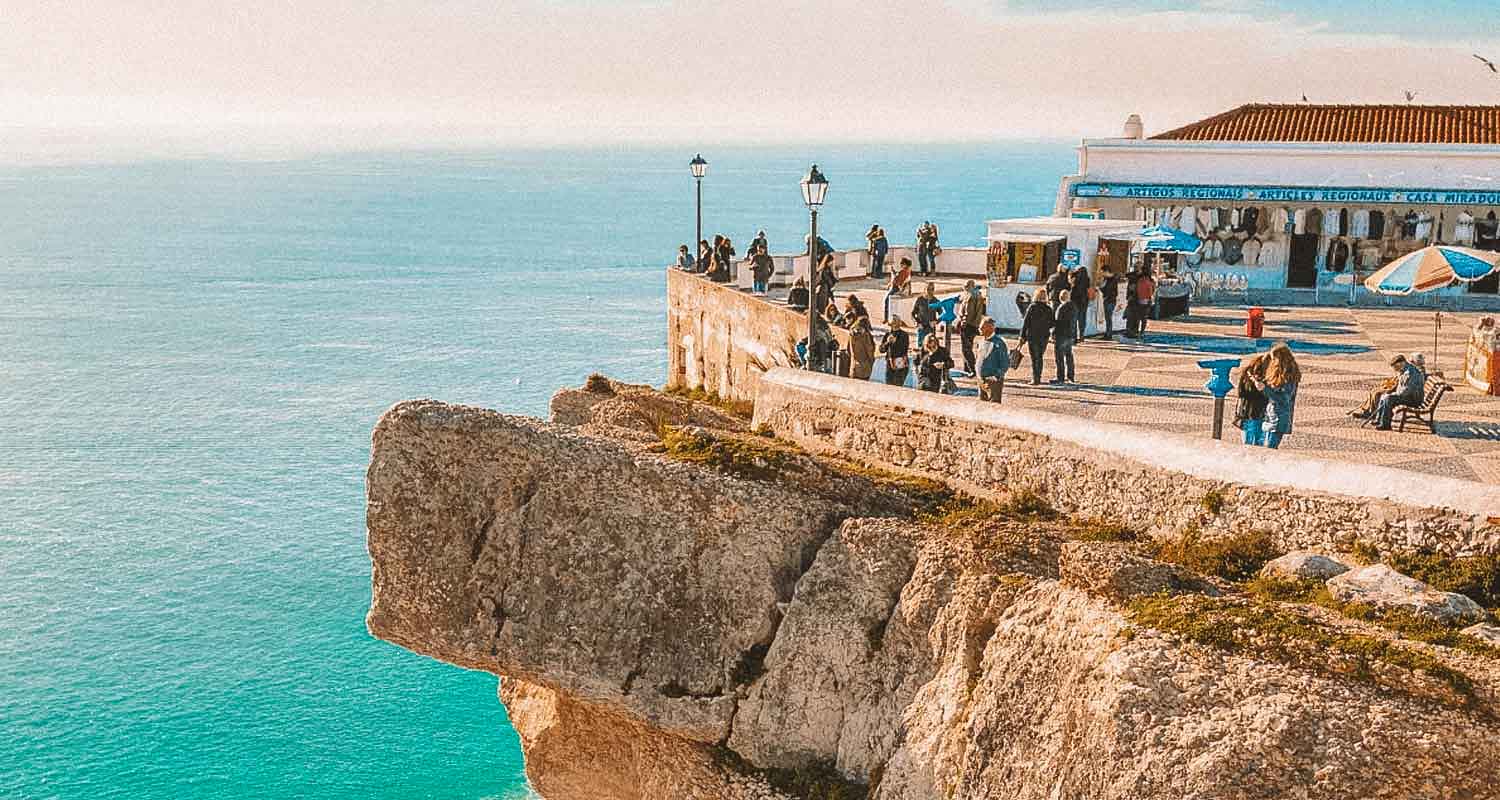 O mirante mais famoso da cidade está no Sítio de Nazaré, ponto mais alto da vila e com um centrinho histórico, onde você pode acessar por um elevador, de carro ou de tuk tuk. No topo de uma falésia a 110 metros acima do nível do mar e com uma vista de tirar o fôlego da Praia de Nazaré, Praia da Vila e Praia de Banhos, é o local perfeito para assistir ao nascer ou ao pôr do sol. Por lá, você encontrará uma pequena praça charmosa com calçada portuguesa, lojinhas, cafeterias e restaurantes bacanas. E o melhor: no Miradouro do Suberco você pode observar uma infinidade de ondas enormes que impressionam a todos que visitam o local e surfistas no mar.