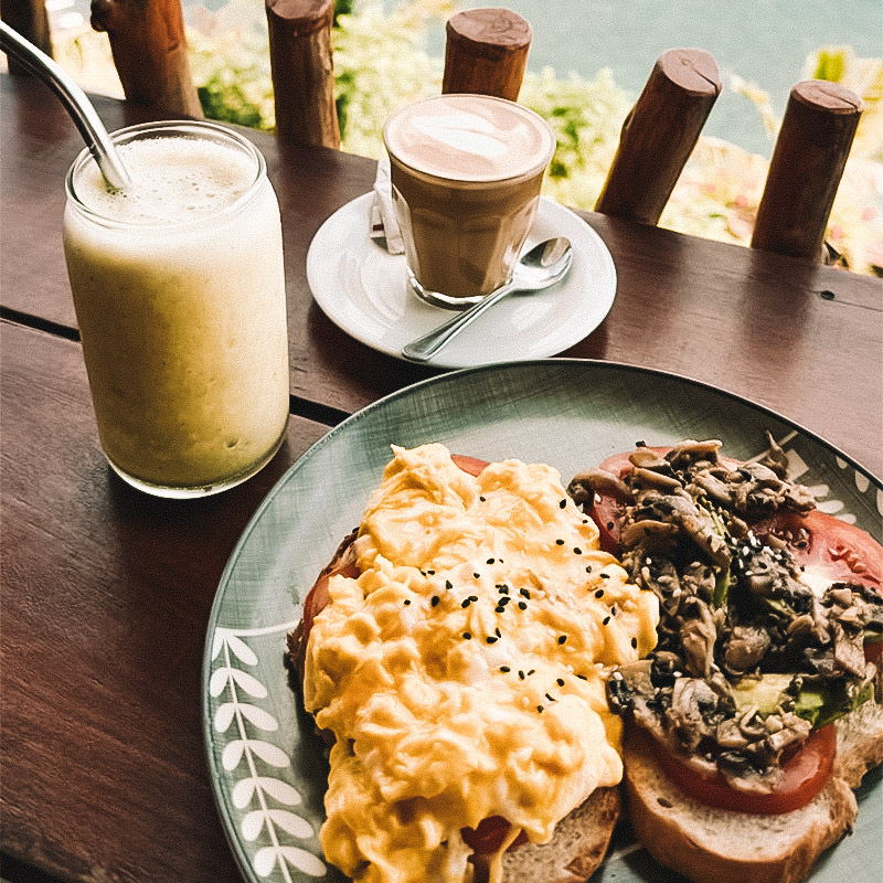 Ecológico e pet-friendly, o café conta com uma super vista do Monte Agung. O cardápio inclui sucos naturais, smoothies, hambúrgueres (com opções veganas e pão sem glúten), smoothies, torradas e sobremesas. Há também uma loja sustentável com produtos artesanais locais – o ambiente é descontraído e acolhedor, e funciona das 7h30 às 22h.