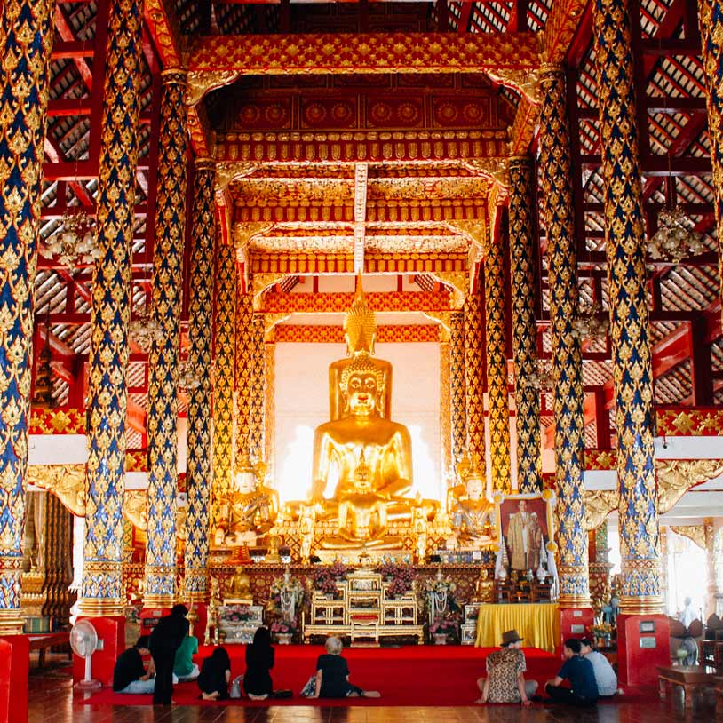Quem vem de Bangkok pode estar próximo de uma overdose de templos, mas esse é realmente notável. Ele guarda, além do templo principal, ruínas de uma estrutura de 80 metros de altura construída entre 1385 e 1402 durante o reinado de Saen Muang Ma. Cada fachada tem escadarias adornadas por serpentes e estátuas de elefantes. No complexo também pode-se participar do programa “Monk Chat” (procure as placas), durante o qual você senta numas mesinhas de xadrez pra conversar com um monge – a ideia é que ele possa praticar inglês. Continue lendo para saber o que fazer em Chiang Mai.