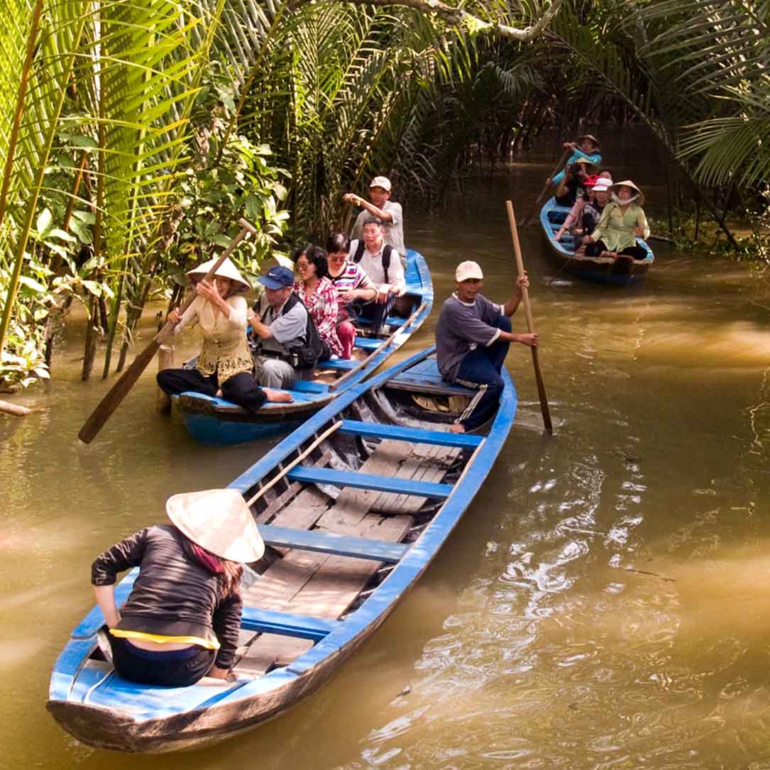O bate-volta mais comum em Ho Chi Minh é a visita ao delta do Mekong, onde o rio alcança o mar através de uma série de pequenos estuários. Agências locais levam para passeios na região: os mais comuns são tours de barco na cidade de My Tho e para o mercado flutuante de Cai Be, onde roupas, cerâmicas, chapéus de palha cônicos e víveres são vendidos em embarcações de madeira. Pagodas aparecem vez ou outra entre a vegetação densa das encostas. O mais legal mesmo é dormir pela região.