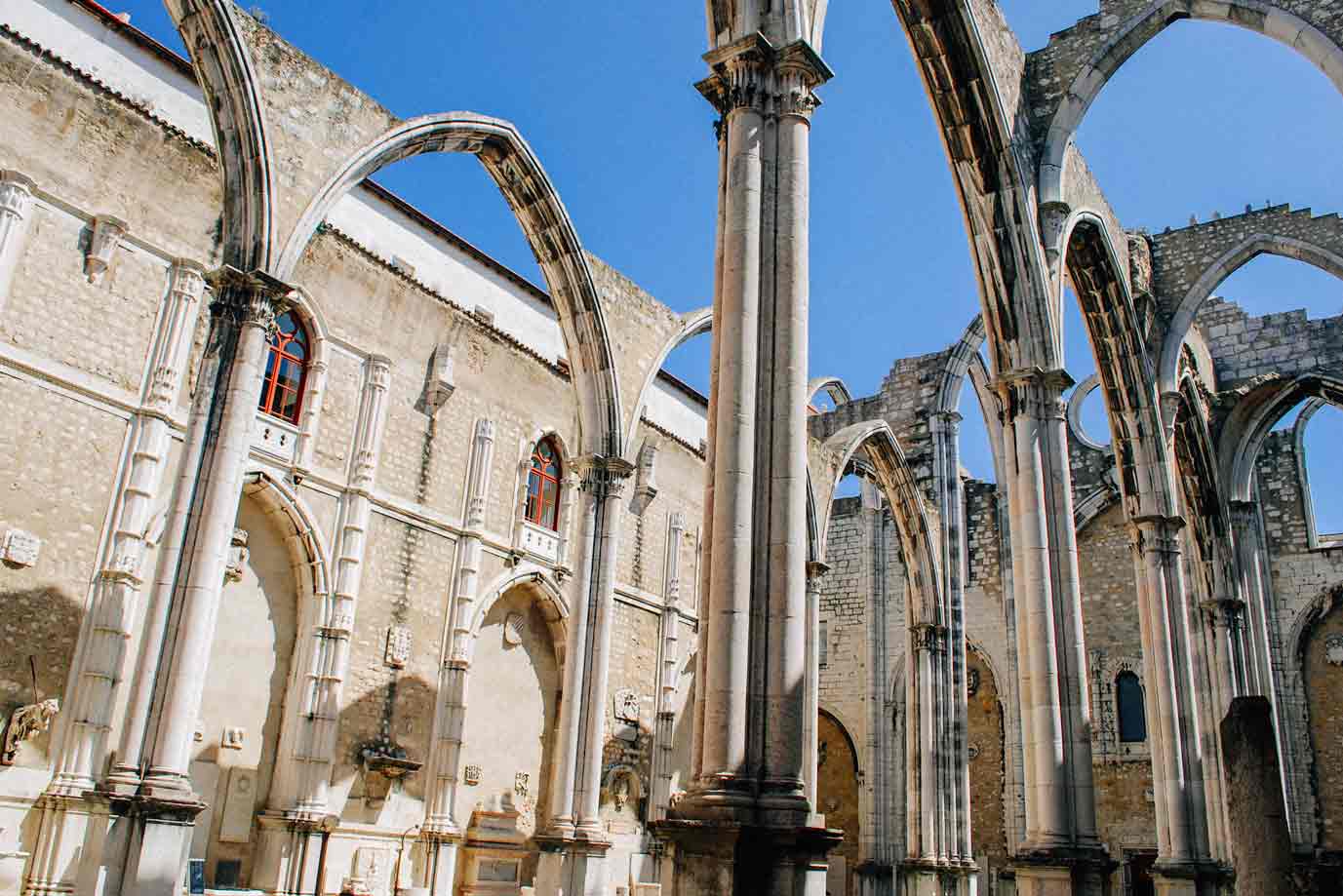 CONVENTO DO CARMO: Saindo do Elevador de Santa Justa, visite essas belas ruínas, resquícios de uma igreja e convento do século 14 que foram destruídos no terremoto de 1755. O conjunto fica de frente para o Largo do Carmo, uma simpática e florida praça com restaurantes em volta. Continue lendo pra saber mais o que fazer em Lisboa.