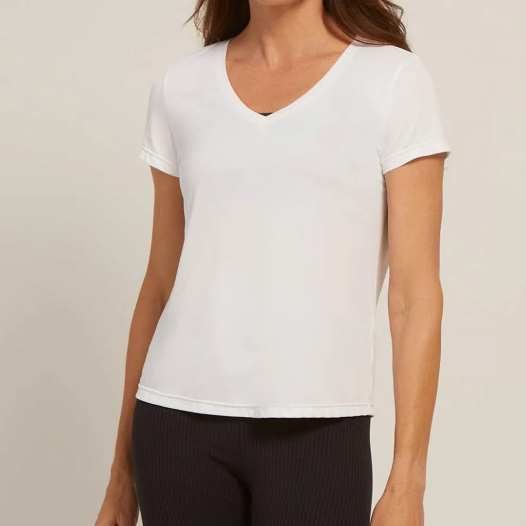 Camiseta Fitness Decote V Branca Dry Uv Palma