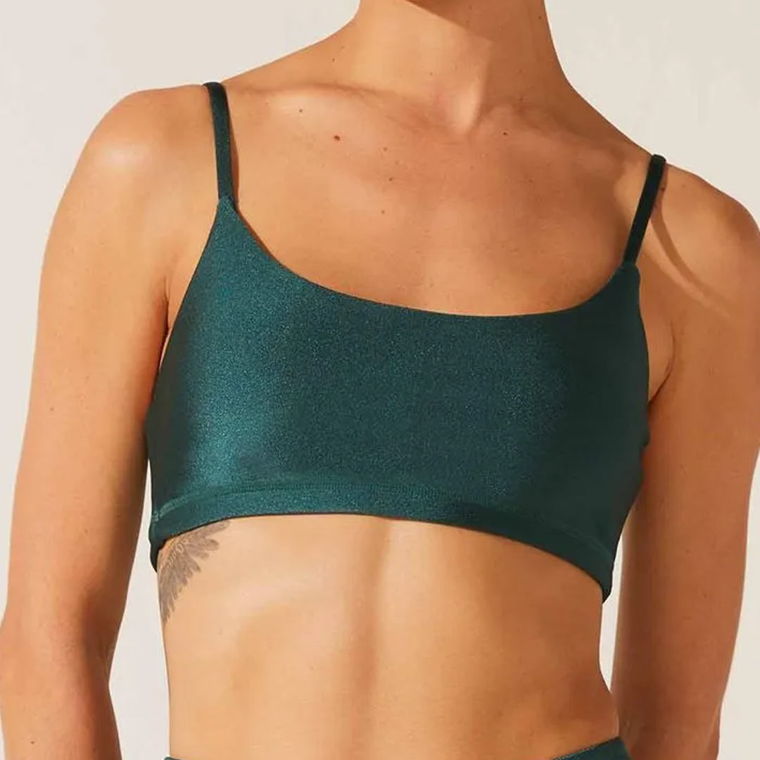 Top com tecido com toque macio e gelado, brilhante, com bastante elasticidade e média compressão. Tem alças finas, decote U elástico embutido na barra e a opção de usar com ou sem bojo. Possui tecnologia Truelife UV (UPF50+), que bloqueia os raios UVA e UVB do sol.