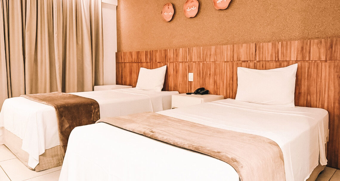 A apenas 20 minutos do aeroporto, este hotel é uma opção simples e funcional, ideal para quem busca praticidade – principalmente em voos muito cedo ou conexões rápidas. A estrutura é básica e os quartos são aconchegantes e espaçosos, divididos em categorias como Suíte Master, Luxo Casal e Luxo Duplo Solteiro. Diárias a partir de R$ 233.