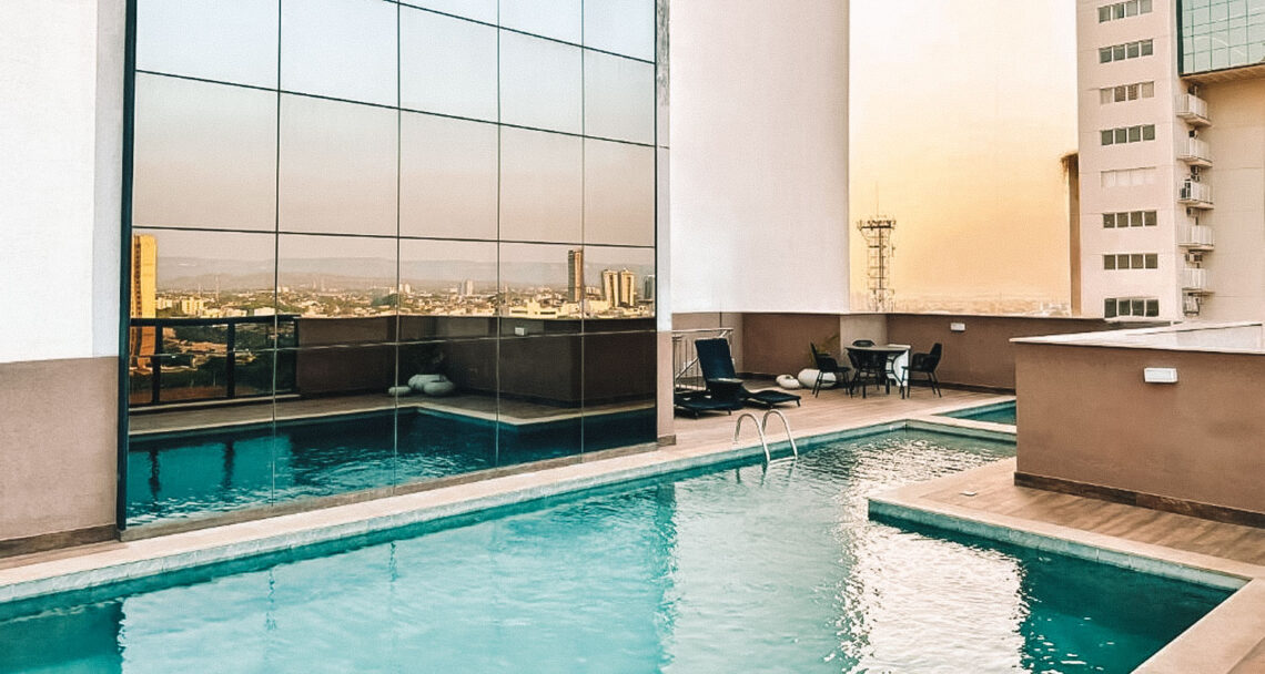 Moderno, com piscina ao ar livre e academia bem equipada, os quartos do hotel são confortáveis, com boa iluminação, mesa para home office e algumas unidades ainda contam com varanda com vista para a cidade. Obs: a propriedade oferece um restaurante e o café da manhã é delicioso. Diárias a partir de R$ 502.