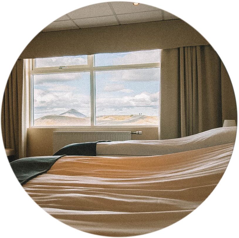 Hotel maiorzinho na borda do lago Myvatn. Os quartos são bem espaçosos decorados em tons clarinhos como bege e branco. Dentro do hotel tem também um restaurante que serve um bom jantar com opções tradicionais: salada, sopa, risoto, hambúrguer. Boa escolha em preço/qualidade.