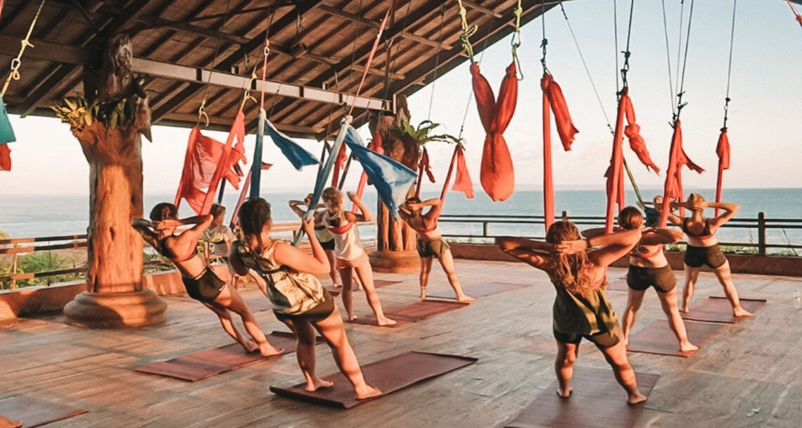 Entre o oceano e os templos da vila de Seseh, o Udara Bali é um refúgio que une retiro de yoga, SPA e detox em um só lugar. As práticas acontecem em shalas abertas com vista para o mar, rodeadas pela brisa e pelo som das ondas, com aulas que vão do Hatha e Vinyasa ao Yin e ao Aero Yoga – uma das experiências mais marcantes do espaço. Suspenso em tecidos de seda, o Aero Yoga combina força, equilíbrio e leveza, permitindo que o corpo explore novas posturas com mais liberdade e consciência. Além das práticas, o Udara oferece massagens terapêuticas, banhos termais, sessões de som, alimentação saudável e momentos de imersão na natureza.
