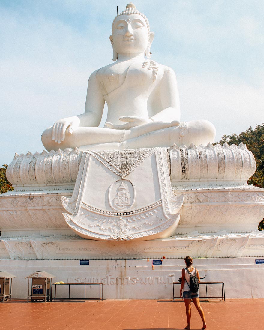 Um Buda branco gigante abençoa Pai do alto de um morro. Para chegar até ele você precisa entrar no templo e subir cerca de 350 degraus – haja fôlego. Bom lugar para estar no fim da tarde. Dá pra ir a pé desde o centrinho com uns 20 minutos de caminhada.