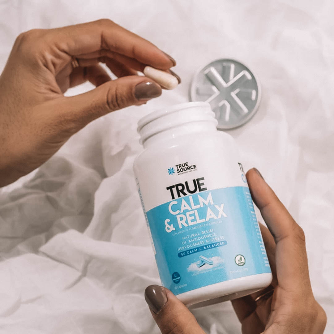 Enquanto a melatonina por si só funciona como um sinal para o corpo entender que é hora de dormir, o True Calm & Relax combina melatonina com outros nutrientes. O magnésio contribui para o relaxamento muscular e do sistema nervoso, o inositol e a glicina ajudam a acalmar, e o L-triptofano participa da produção de neurotransmissores ligados ao bem-estar.