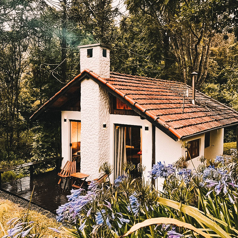 No coração das montanhas, cercada por mata nativa e trilhas, a casa de campo oferece uma experiência completa de contato com a natureza. Construída em dois andares, recebe até cinco hóspedes e combina charme europeu com conforto, com mezanino, cozinha equipada, sala de jantar e quartos com vista para o verde. A propriedade ainda inclui adega com vinhos selecionados, redário, churrasqueira, lareira externa, lago e jardim. Diárias desde R$ 500.