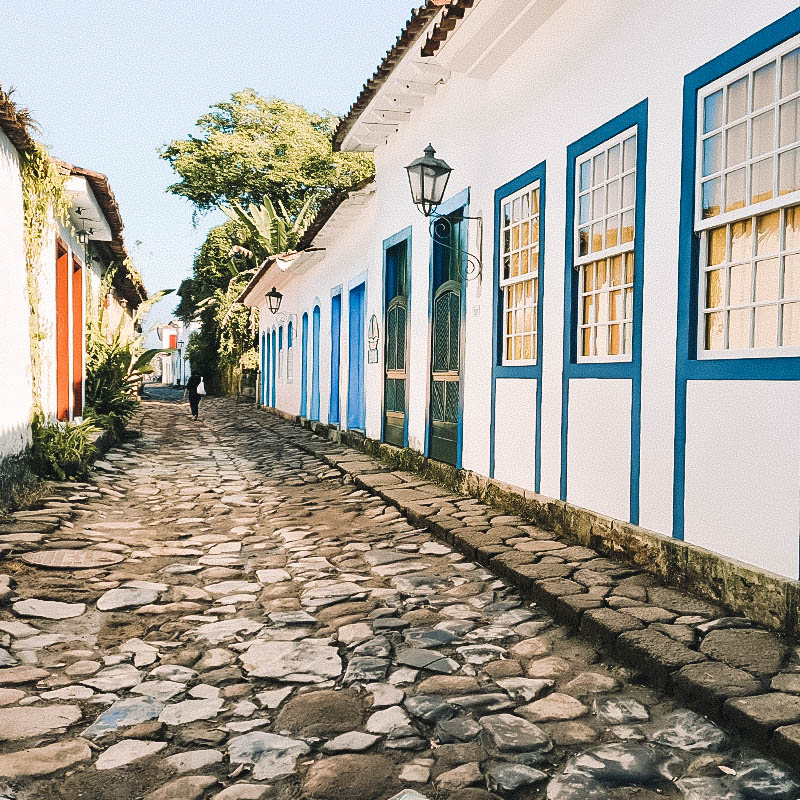Ruas de paralelepípedos, centro histórico preservado, arquitetura colonial e casinhas coloridas definem Paraty.