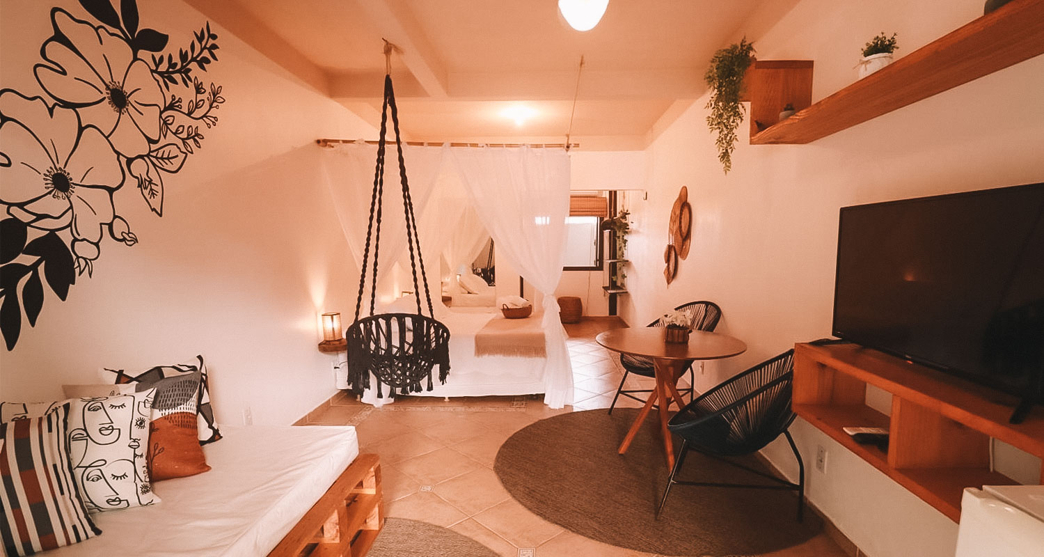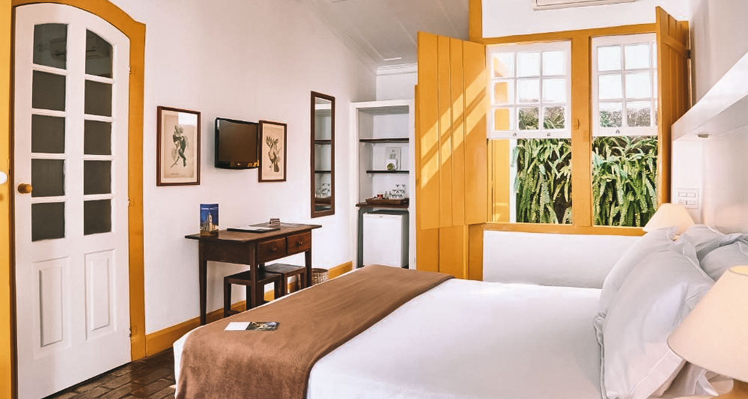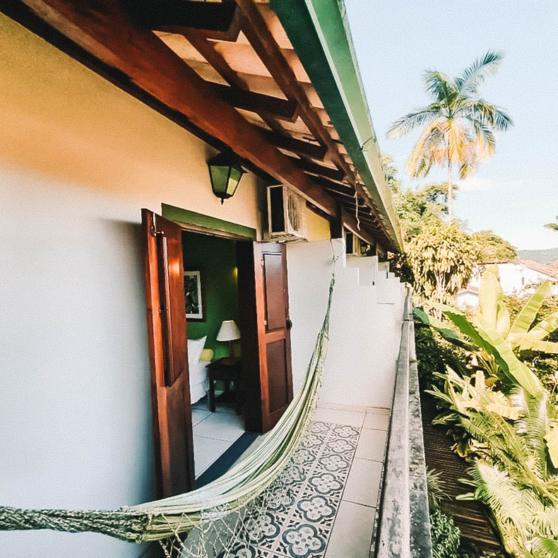 Pequena e simples, a pousadinha fica pertinho do centro histórico de Paraty – dá para fazer tudo a pé. Os quartos são decorados com cores vivas e plantinhas que deixam o ambiente mais leve, e o café da manhã conta com bolos gostosos, sucos, frutas e mais. O atendimento é destaque e, para quem viaja com pet, eles são aceitos mediante taxa, que varia conforme o porte: R$60 (pequeno), R$70 (médio) e R$80 (grande). Diárias desde R$ 215.