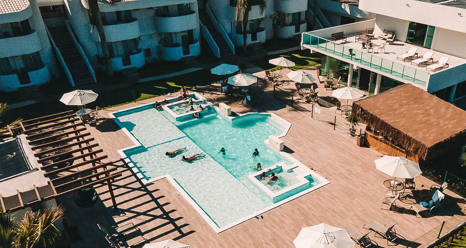 Com um bom custo-benefício para quem quer ficar pertinho do Beto Carrero World e aproveitar dias tranquilos à beira-mar, o hotel fica de frente para a praia. O café da manhã caseiro conta com pães frescos, frutas, bolos, frios e pratos quentes. A estrutura inclui piscinas ao ar livre e coberta, garantindo lazer em qualquer época do ano, além de quartos simples, confortáveis e funcionais (alguns com vista para o mar). E o melhor: a propriedade é pet-friendly e aceita um animal de pequeno porte por quarto, mediante taxa diária de R$ 70. Diárias a partir de R$ 279.