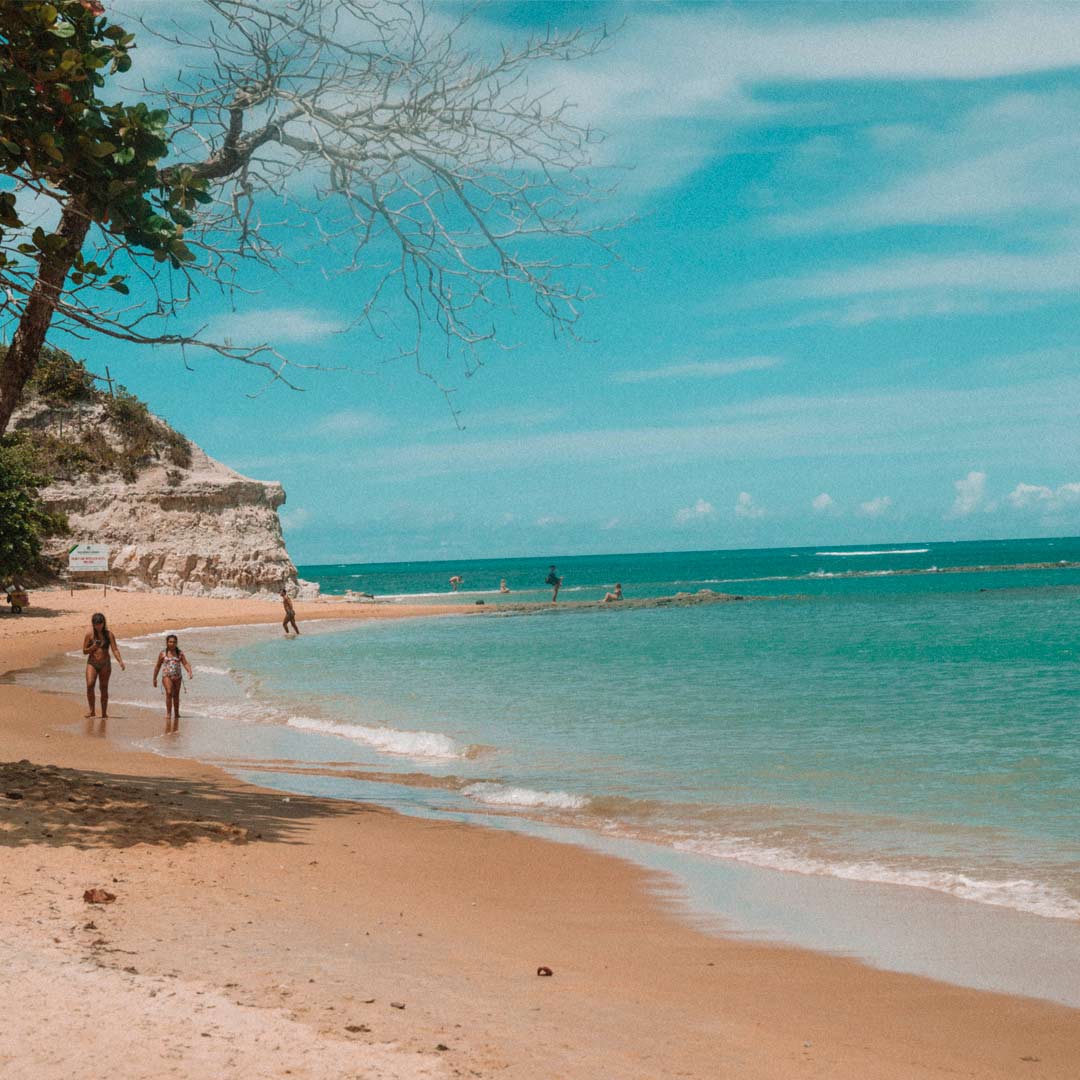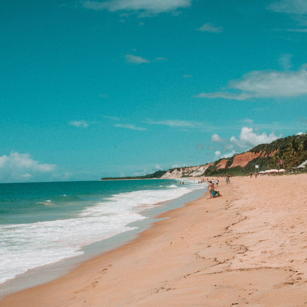 Ela fica localizada ao sul de Arraial d’Ajuda – são cerca de 25 minutos de carro a partir de Trancoso. Seu principal diferencial são as altas falésias em tons de bege, laranja e vermelho com coqueiros verdinhos no topo, bancos de areia logo abaixo, trechos de mata nativa ao redor e sempre acompanhado do mar azul esverdeado e água morninha – é de tirar o fôlego. É preferível acessá-la pela manhã, quando os ônibus de excursões ainda não chegaram por lá – mas, até com o turismo em massa presente, acredite: a sensação é de total calmaria. Sua ondas são ora leves e ora um pouco mais agressivas – dá para levar alguns caldos, mas do lado direito tem espaços que mais parecem piscinas naturais, ideal para os pequenos.