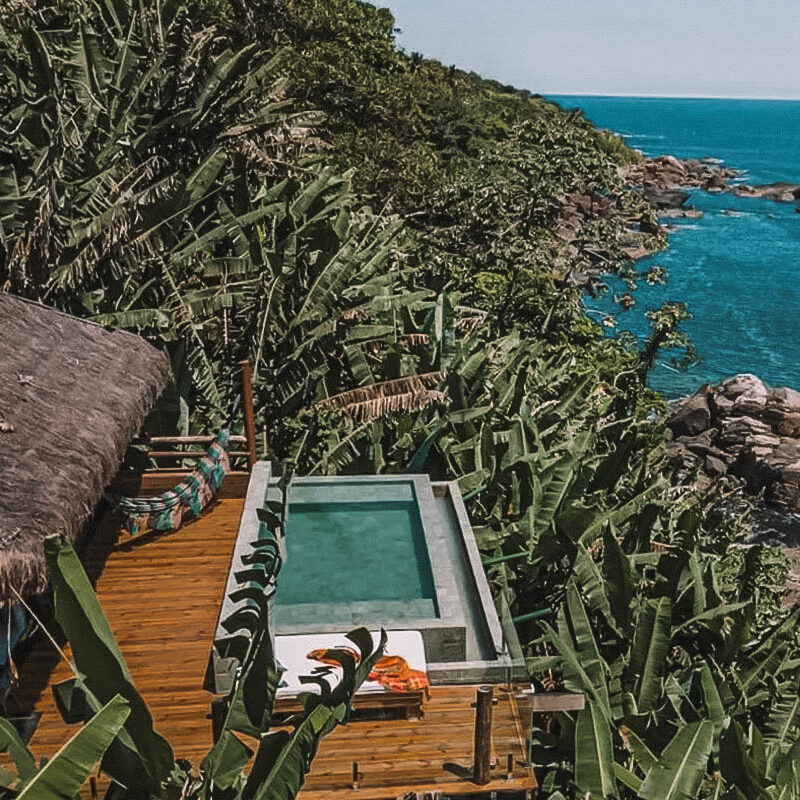 Com uma vista insuperável do mar, a Casa das Águas é super exclusiva com piscina aquecida de borda infinita, cozinha equipada, lareira ecológica e rede para relaxar, a propriedade abriga até dois hóspedes em uma cama king size e oferece alguns serviços extras pra maior comodidade.