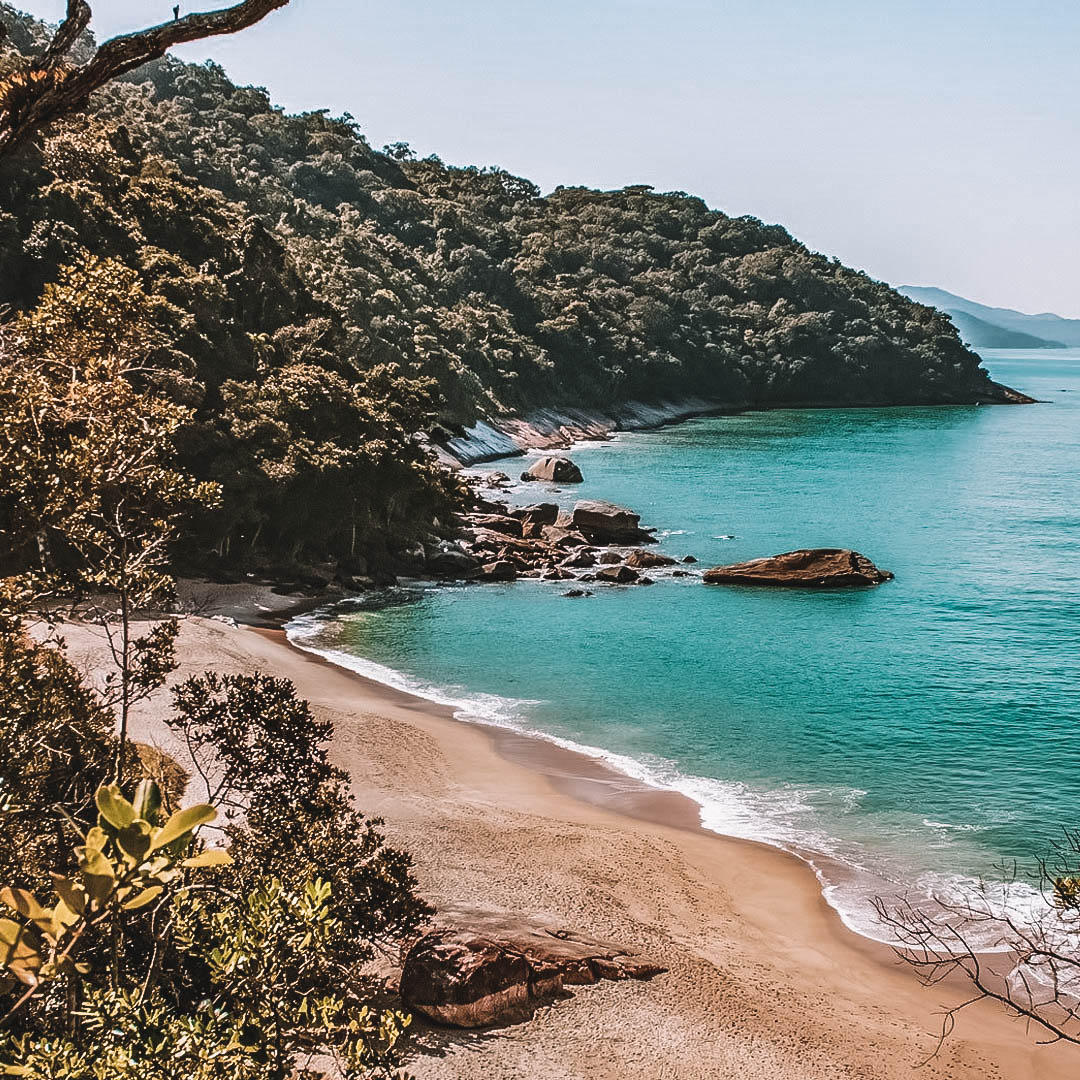 Considerada pelo The Guardian como uma das dez praias mais bonitas do Brasil, seus 800 metros de orla reservam uma vibe simples, rústica e única. O difícil acesso acaba sendo um alívio pro turismo local: só dá pra chegar em uma trilha de 4 horas entre sobes e desces ou encarando uma viagem de uma hora em um barquinho caiçara que vai batendo no mar aberto quase que o caminho todo. Por ali, o mundo parece ter parado no tempo, sem acompanhar a urbanização do resto da ilha, mantendo vibes caiçara, uma faixa de areia clara e larga e mar com ondas fortes que chamam o surf.